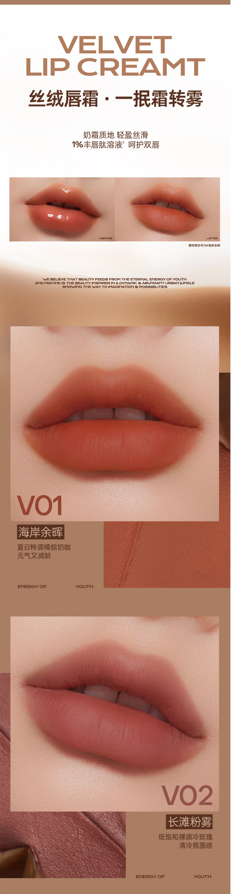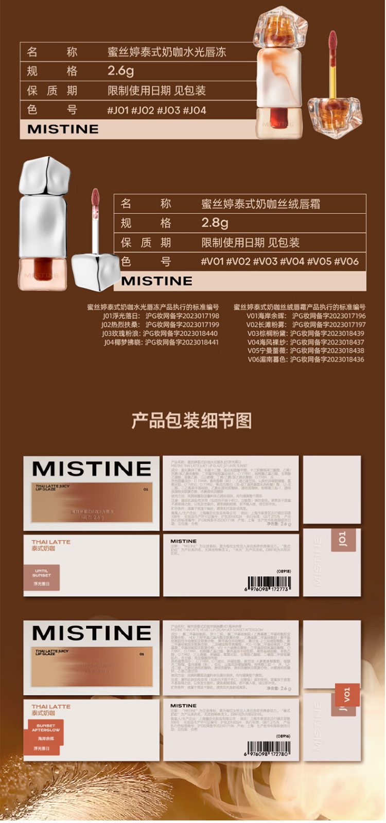 商品名称:Mistine蜜丝婷泰式奶咖唇釉口红(单位:支) V01海岸余晖