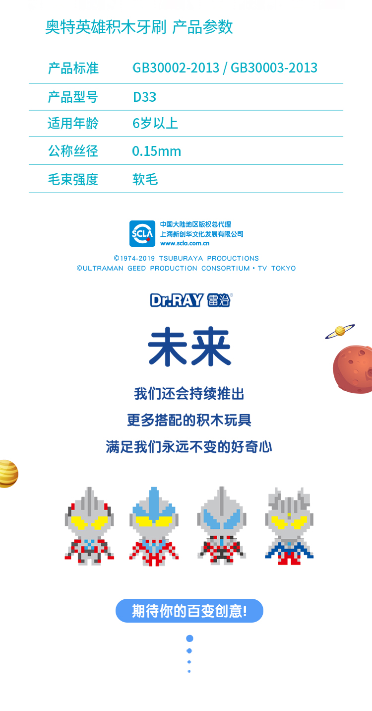 商品名称:雷治 奥特英雄积木牙刷 D39-1 (单位:支) 混色