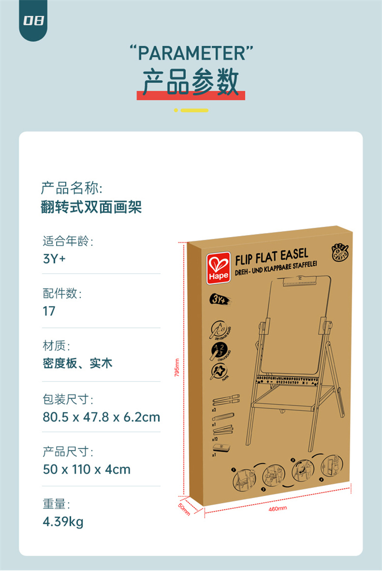 商品名称:Hape儿童绘画玩具木质多功能白画板(单位:个) E1063