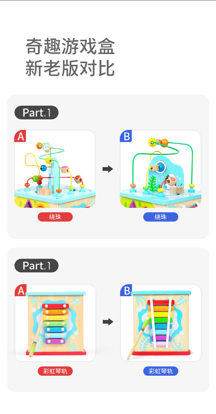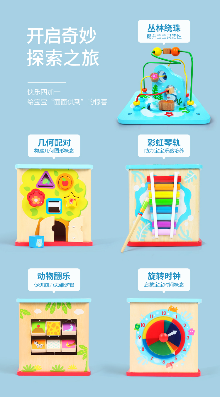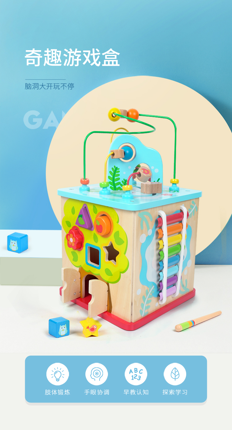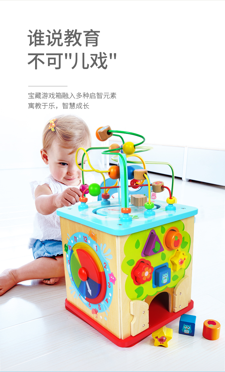 商品名称:Hape早教启蒙玩具奇趣游戏盒儿童玩具多功能百宝箱木制积木玩具(单位:个) E8378