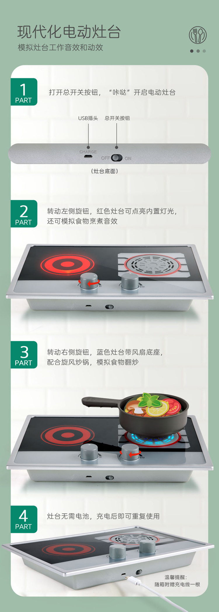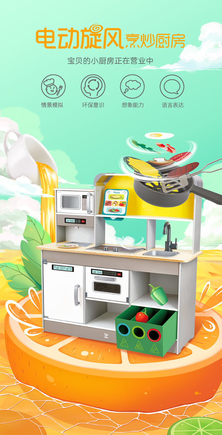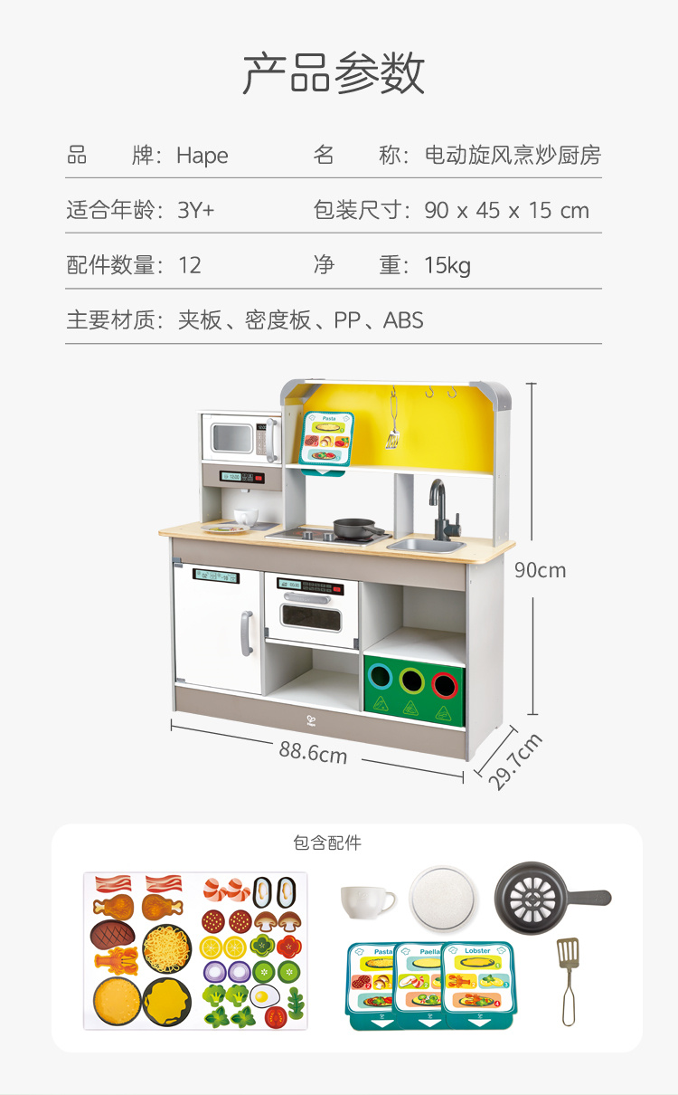 商品名称:Hape模拟真实情景过家家儿童玩具早教电动旋风烹炒厨房 (单位:套) E3177