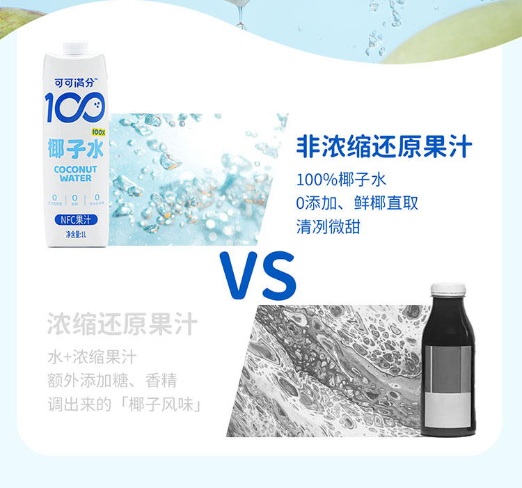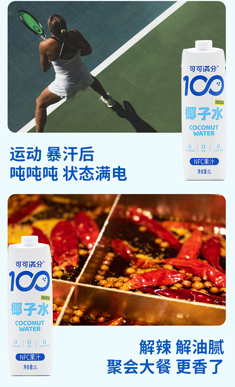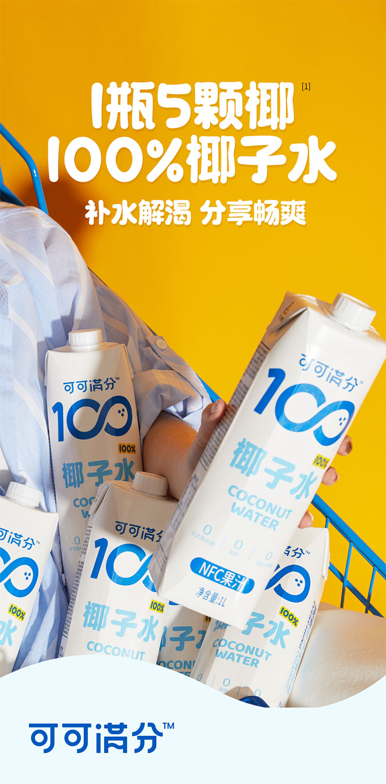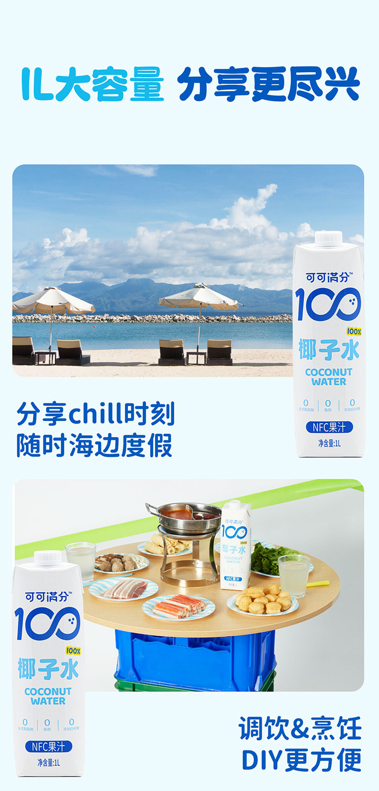 商品名称:可可满分100%椰子水NFC新鲜纯椰青汁含电解质运动补水无添加1L*1瓶 蓝色