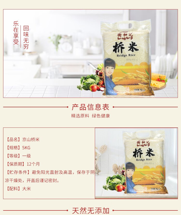 商品名称:衡和记桥米5KG 单位:袋 自然色