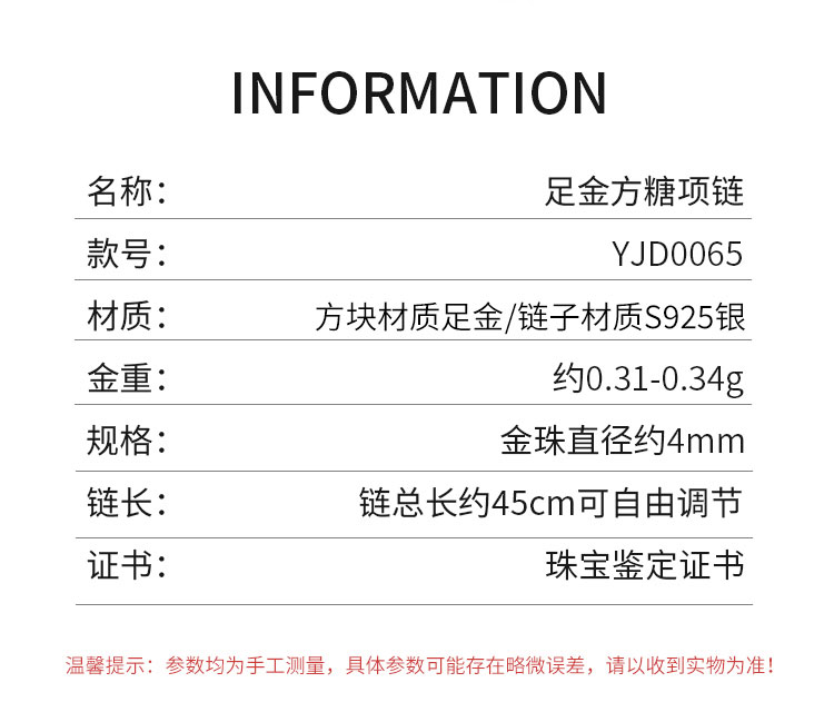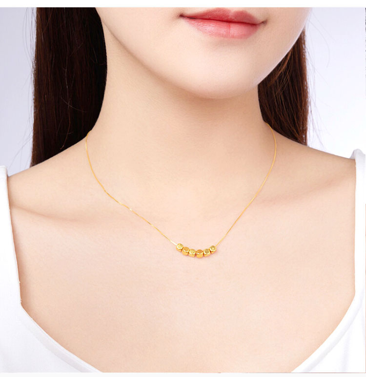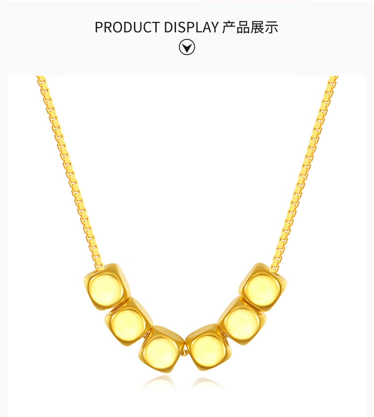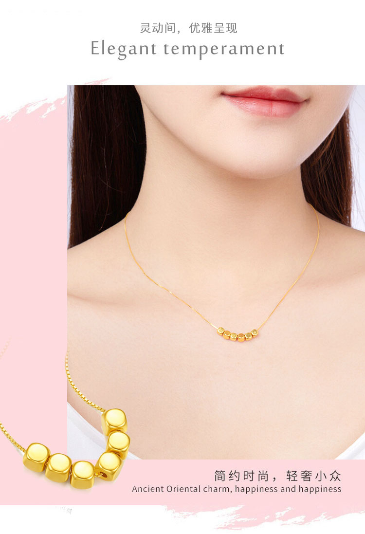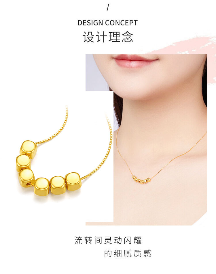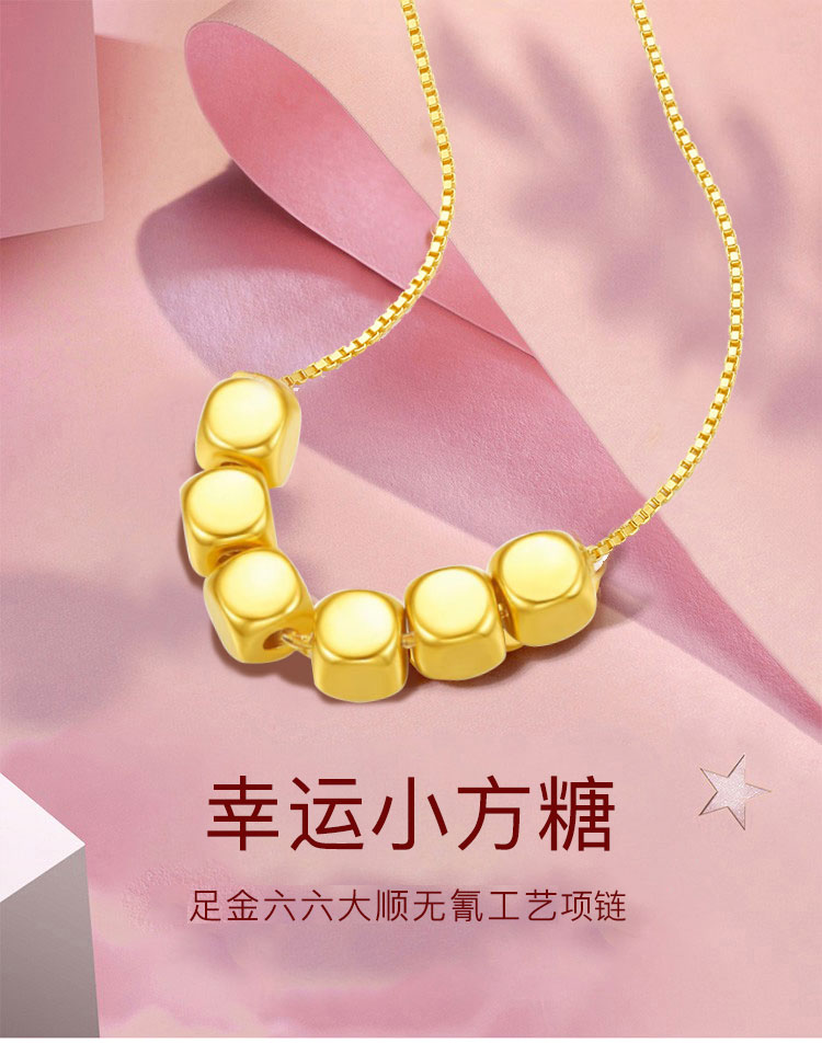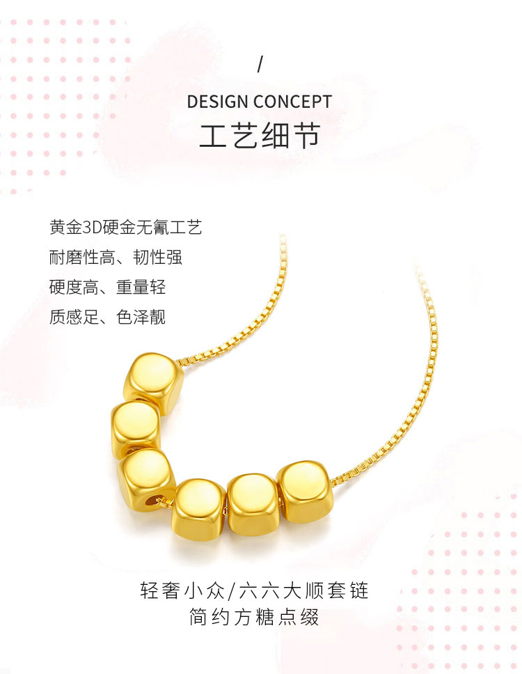 商品名称:GZUAN古钻珠宝 方糖 黄金3D硬金足金999六六大顺无氰工艺女士微笑吊坠(配S925银项链)/件 金色