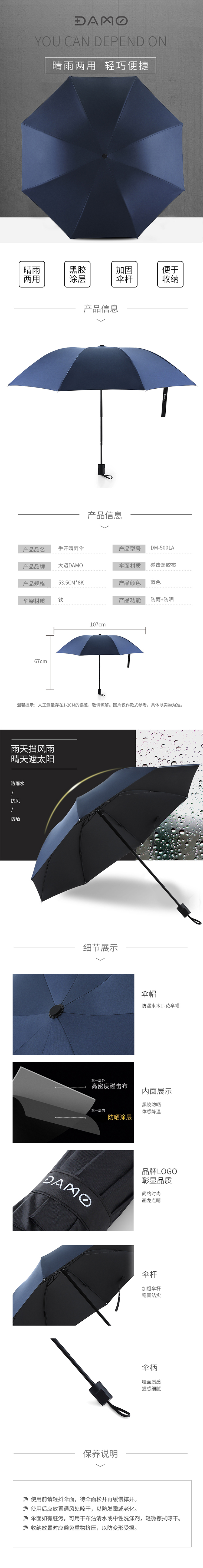 商品名称:大迈 手开防晒晴雨伞 DM-5001A(单位:套) 蓝色