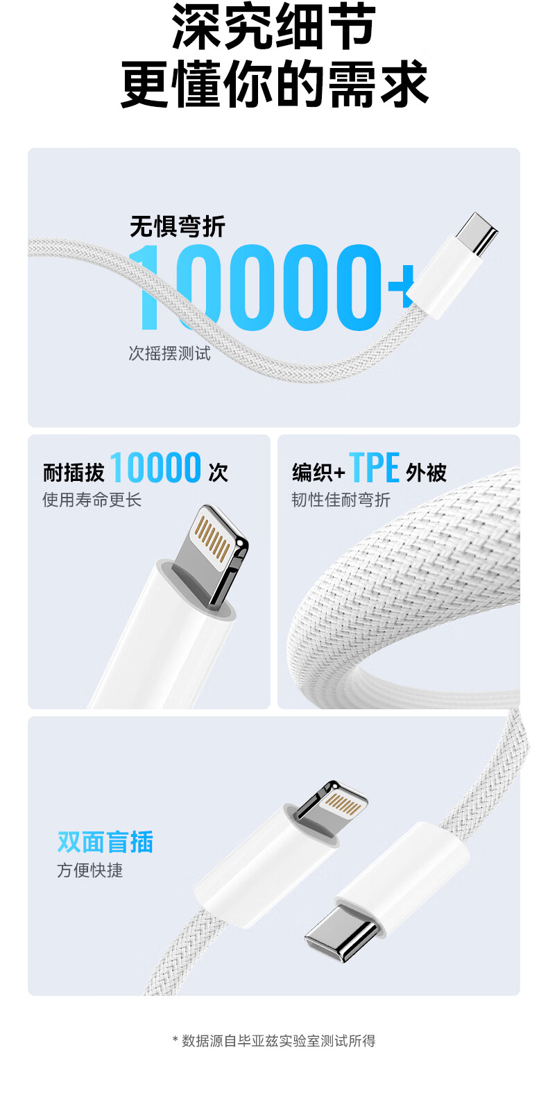 商品名称:毕亚兹Type-C to Lightning 数据线K122-C-L-1米 蓝色
