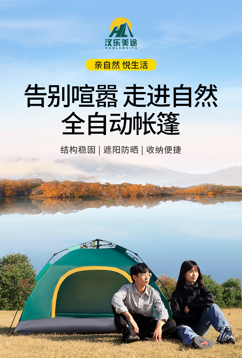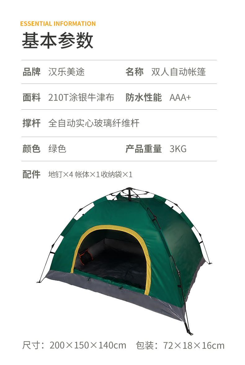 商品名称:汉乐美途双人自动帐篷 HL-0110(单位:套) 绿色