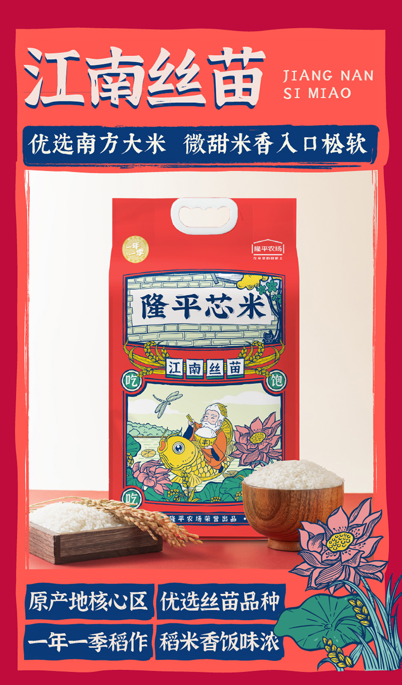 商品名称:隆平芯米优质籼米江南丝苗5kg(单位:袋) 玫瑰红色