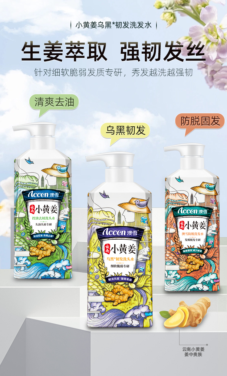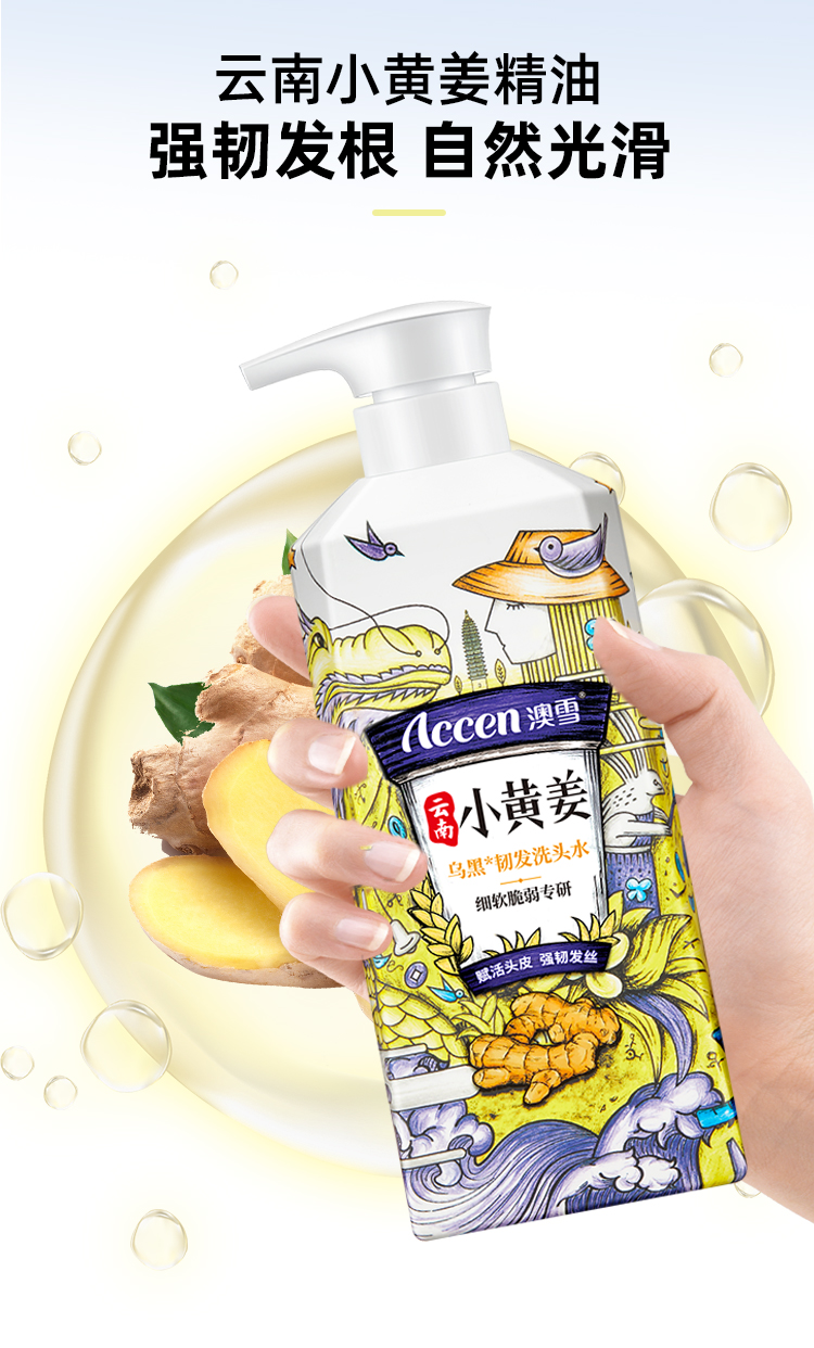 商品名称:澳雪(accen)云南小黄姜乌黑韧发洗发水500ml (单位:瓶) 乌黑韧发