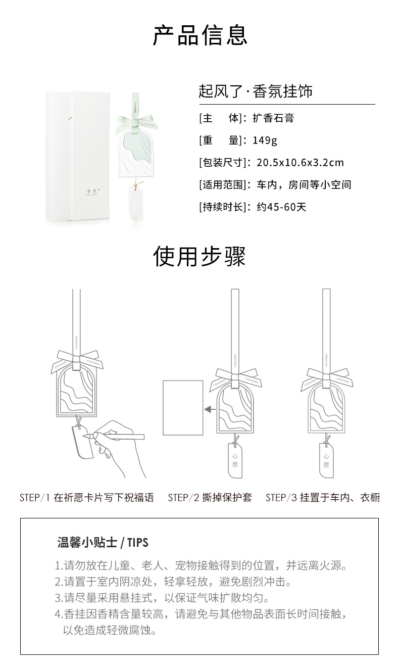 商品名称:香度 起风了 白石香挂 车载香薰 挂衣柜片 单位:个 蓝风铃