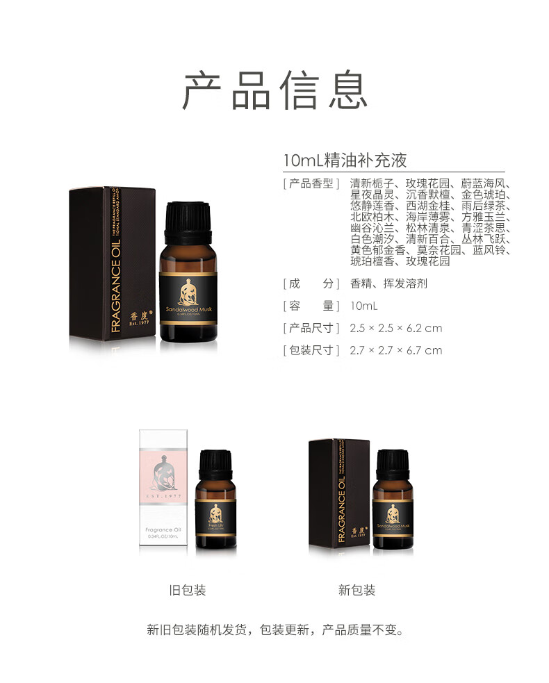 商品名称:香度 香薰精油补充液 加湿器香薰机补充装 10ml补充液(单位:瓶) 混色 清新栀子