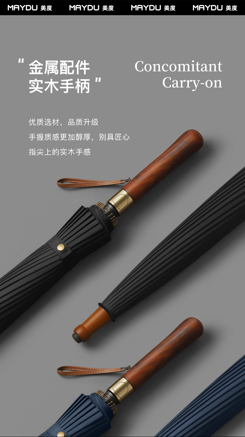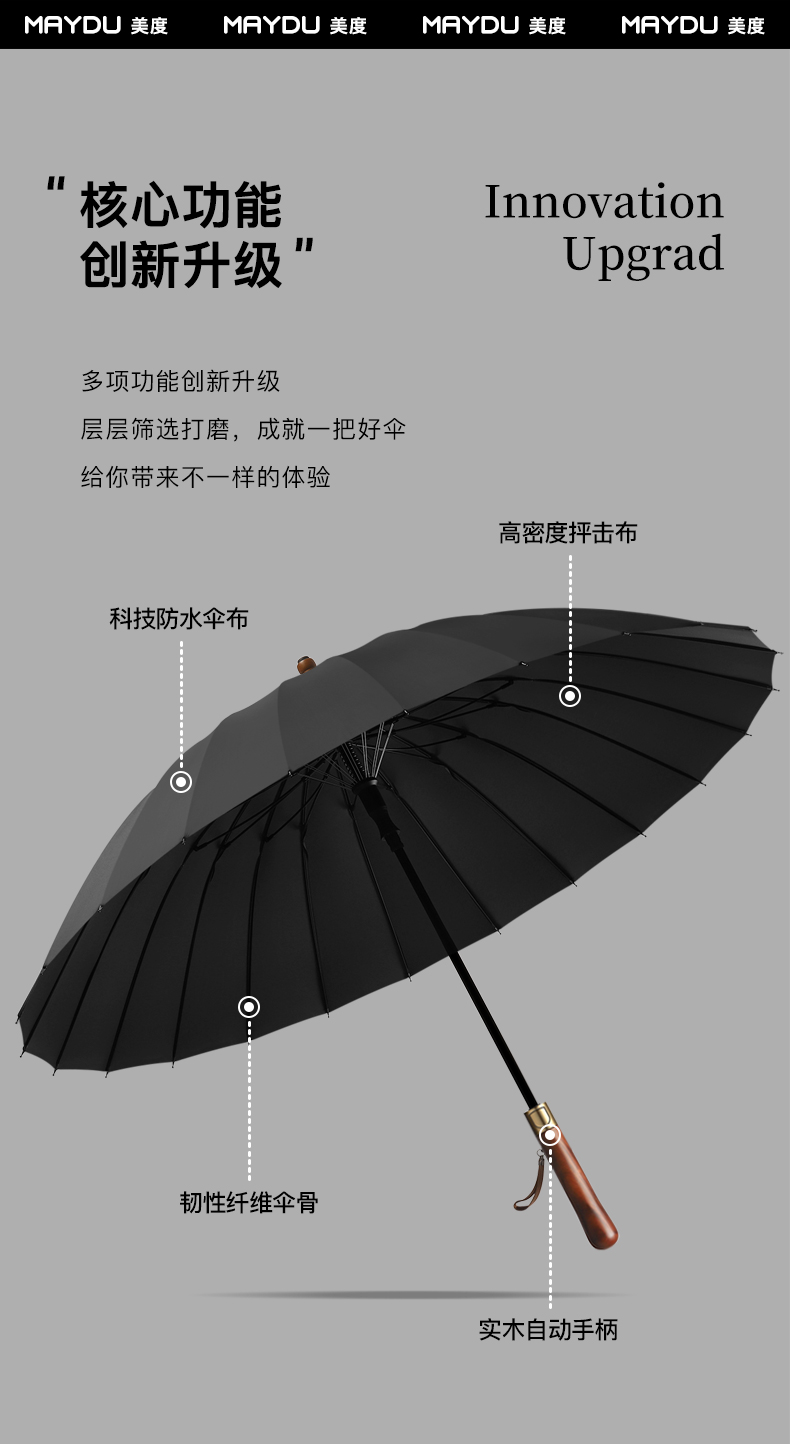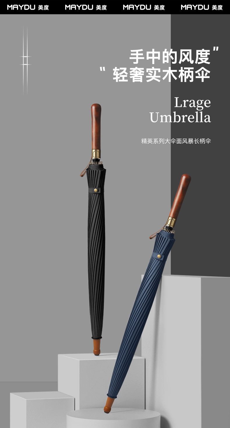 商品名称:美度24骨加大加固商务雨伞实木男士直杆两用防风长柄伞双人自动伞M8005(单位:把) 藏青色