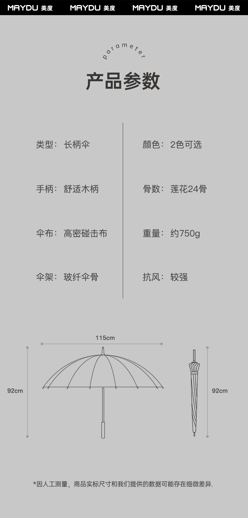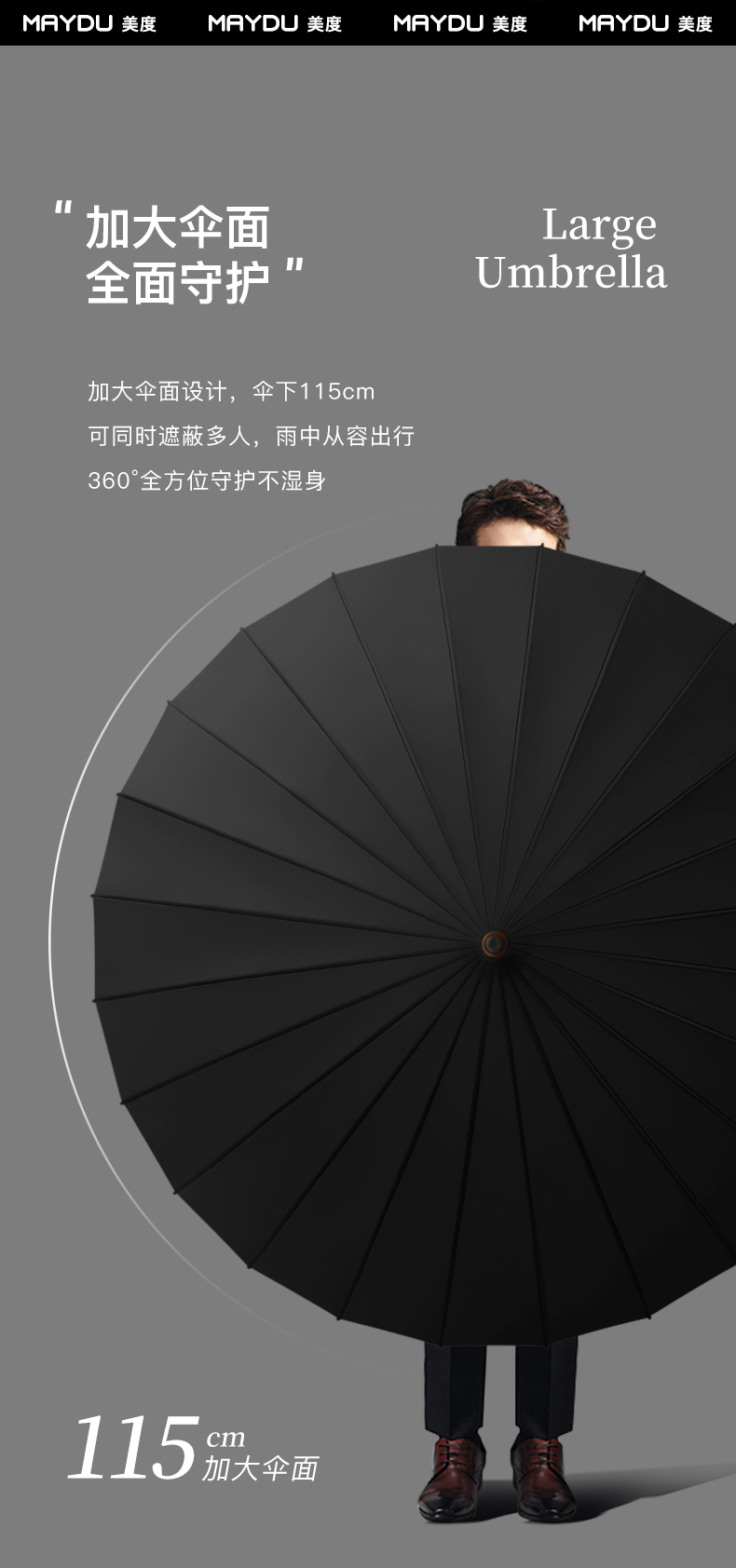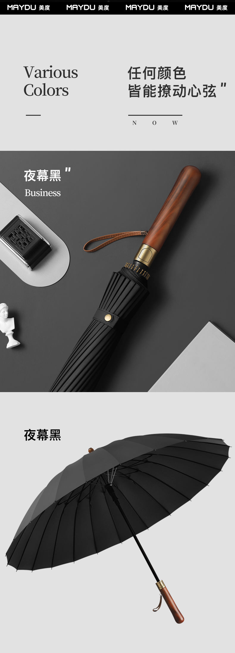 商品名称:美度24骨加大加固商务雨伞实木男士直杆两用防风长柄伞双人自动伞M8005(单位:把) 藏青色