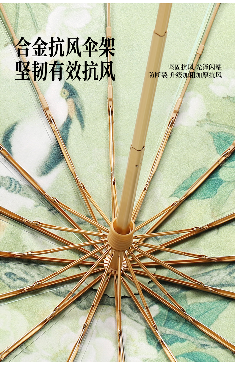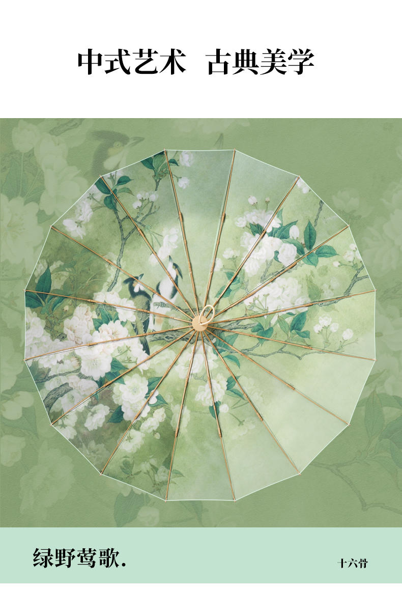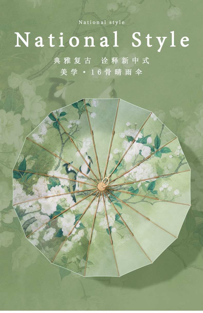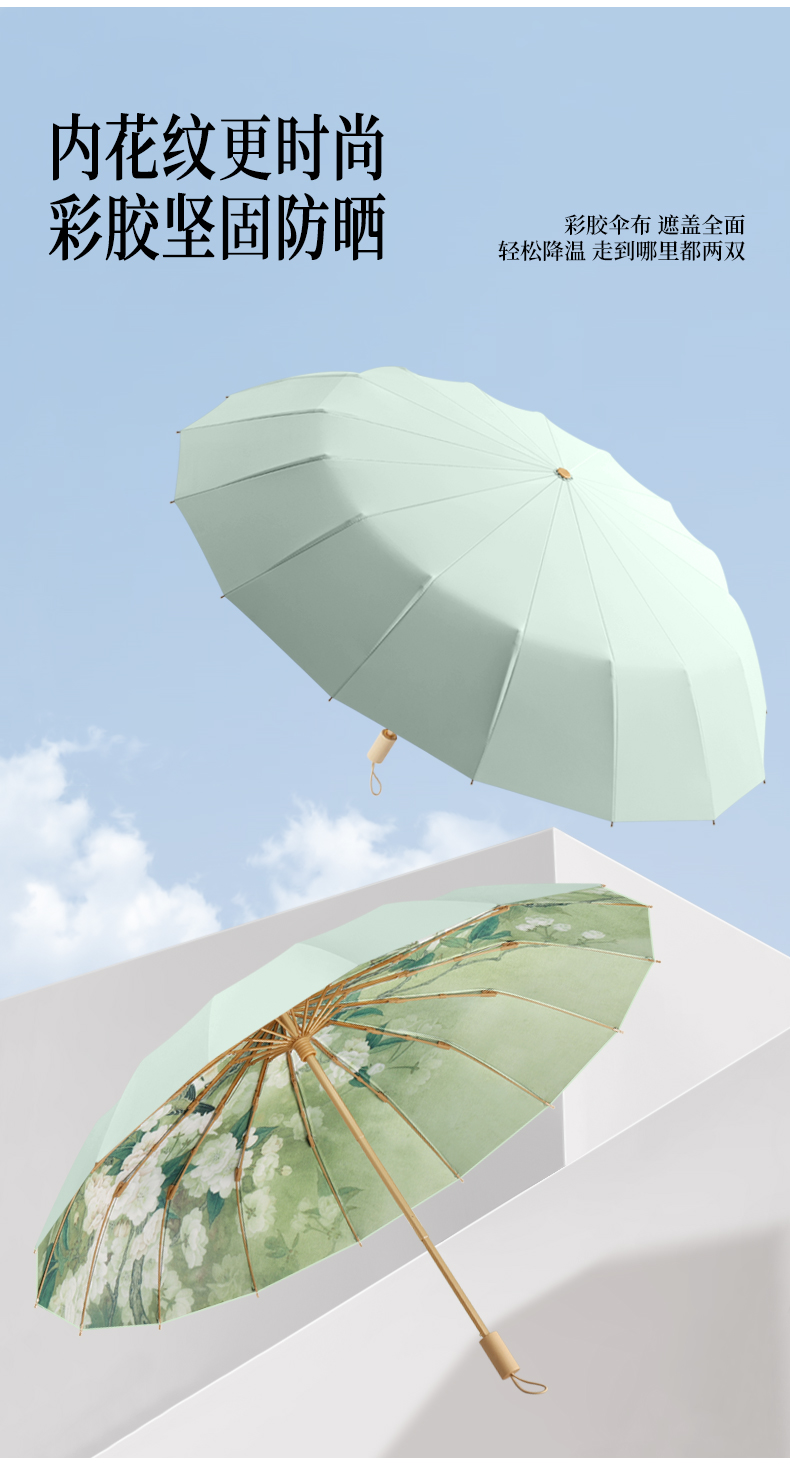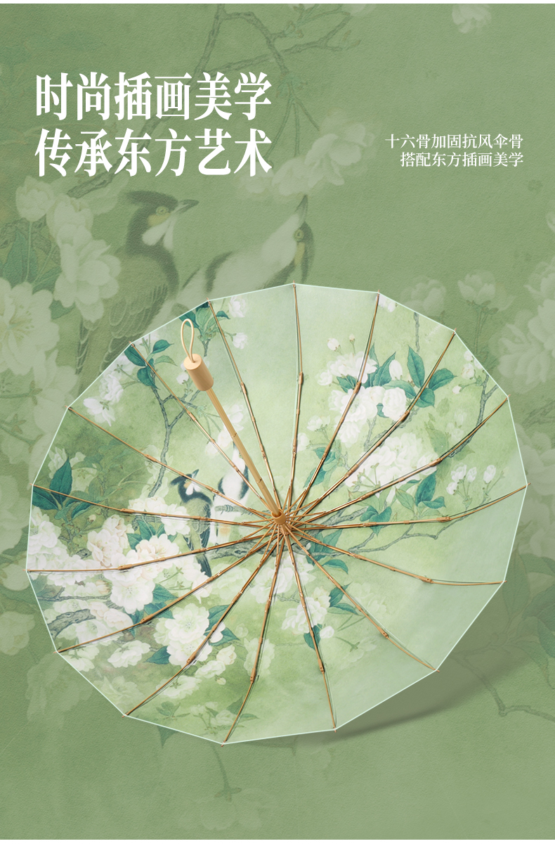 商品名称:美度三折16骨彩胶太阳伞女晴雨两用防晒防紫外遮阳伞国风插画系列M3165(单位:把) 绿叶莺歌