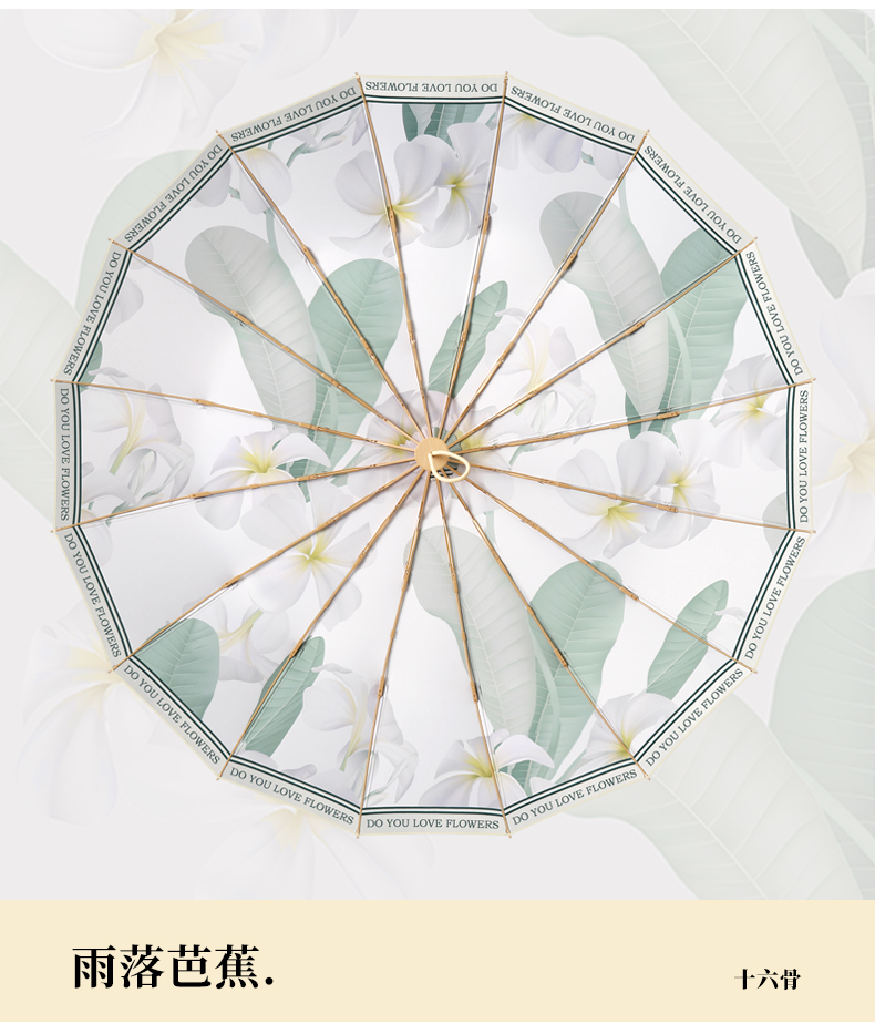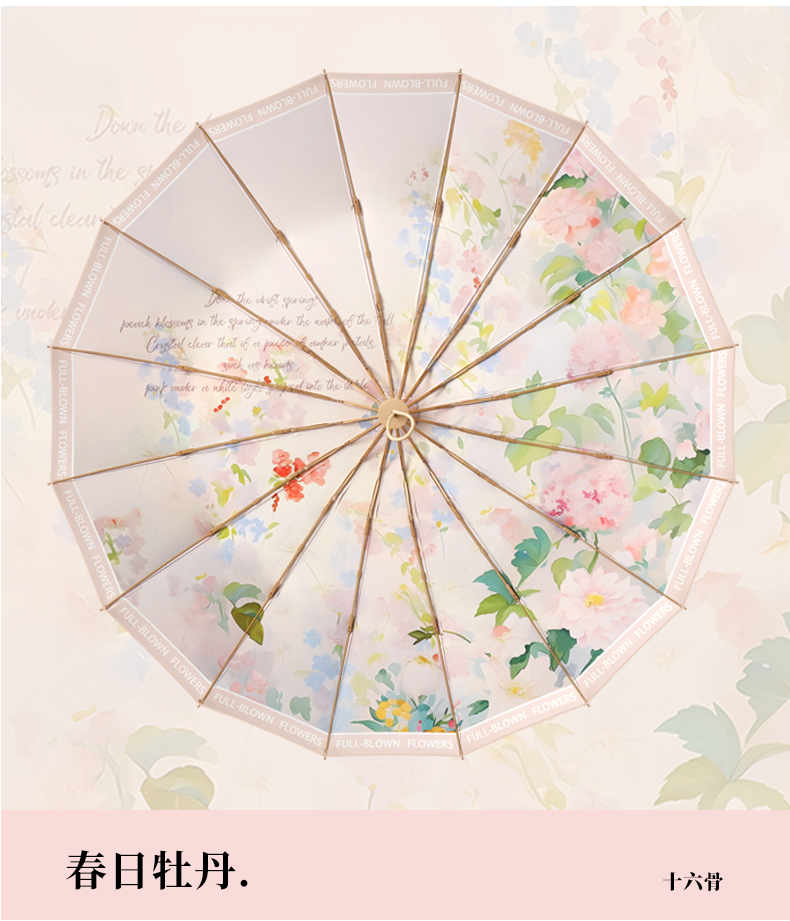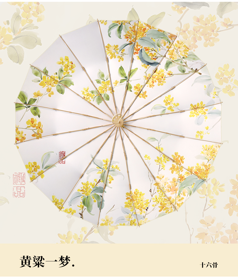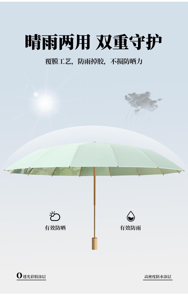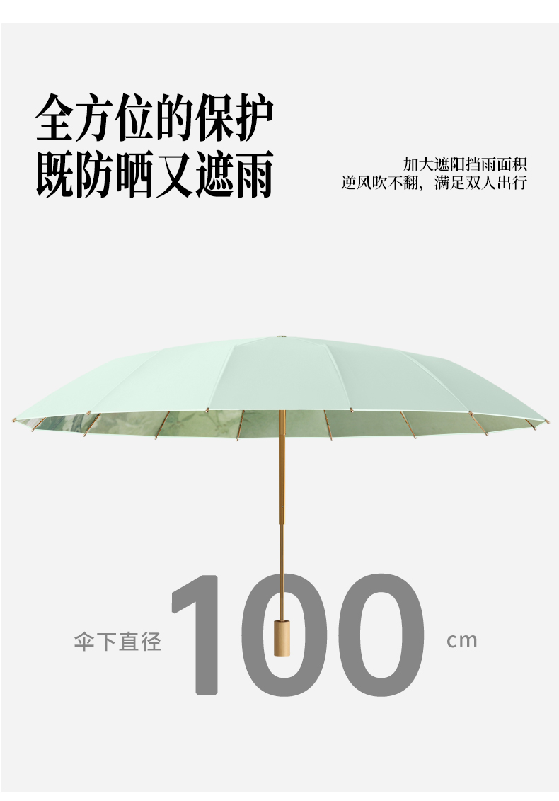 商品名称:美度三折16骨彩胶太阳伞女晴雨两用防晒防紫外遮阳伞国风插画系列M3165(单位:把) 绿叶莺歌
