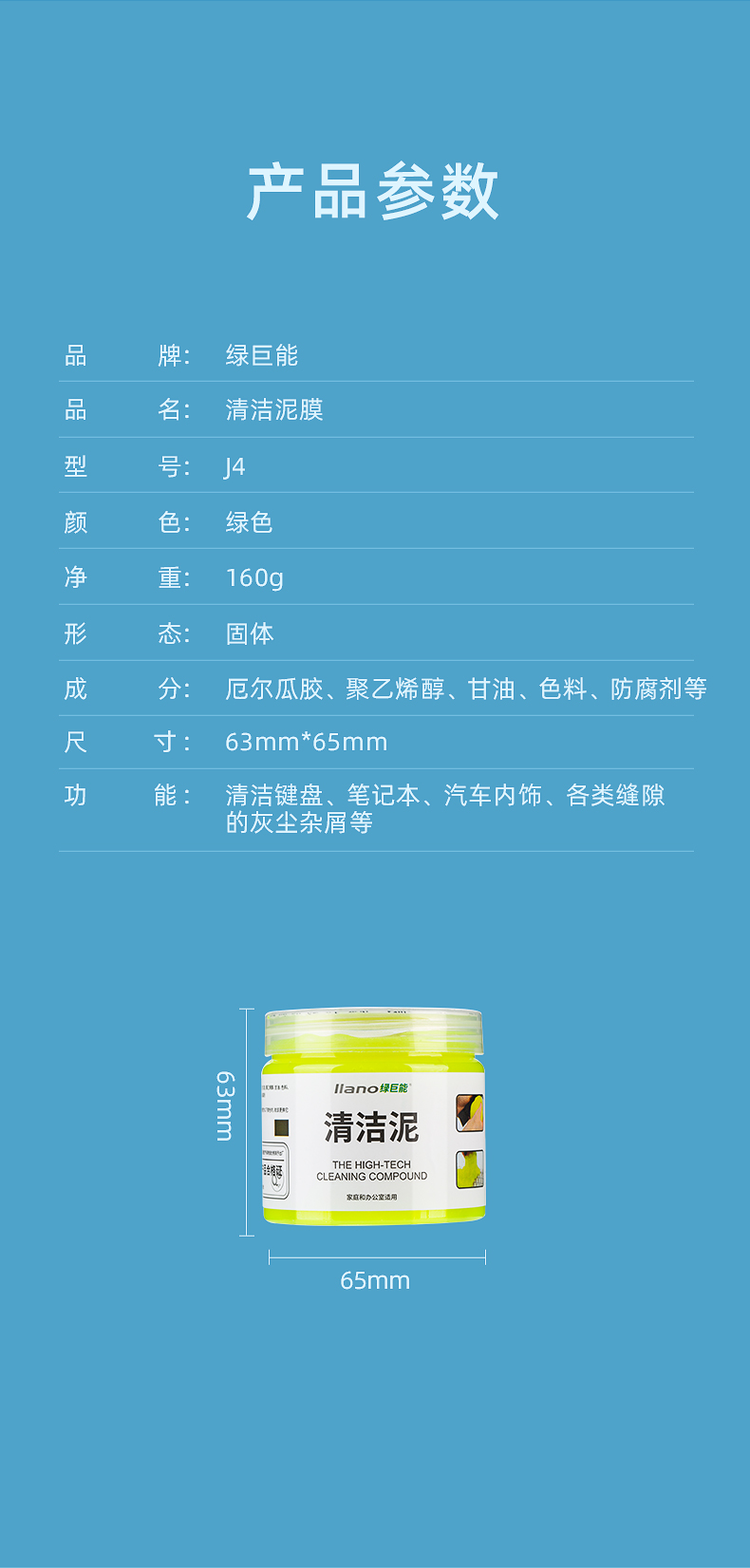 商品名称:绿巨能(llano)键盘清洁泥软胶 笔记本电脑清洁泥 汽车清洁软胶 空调出风口清洗泥/盒 绿色