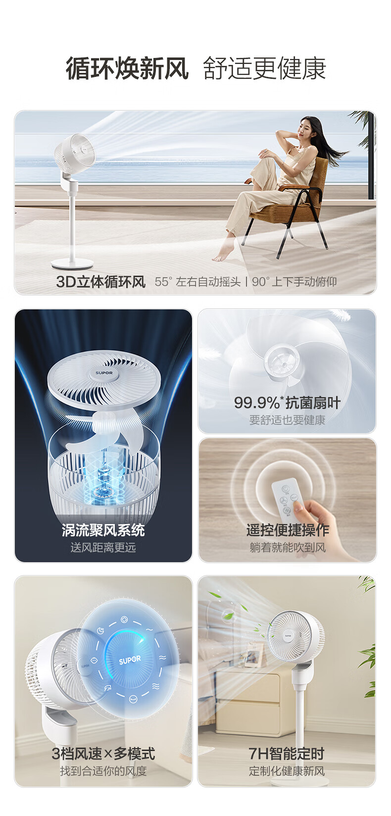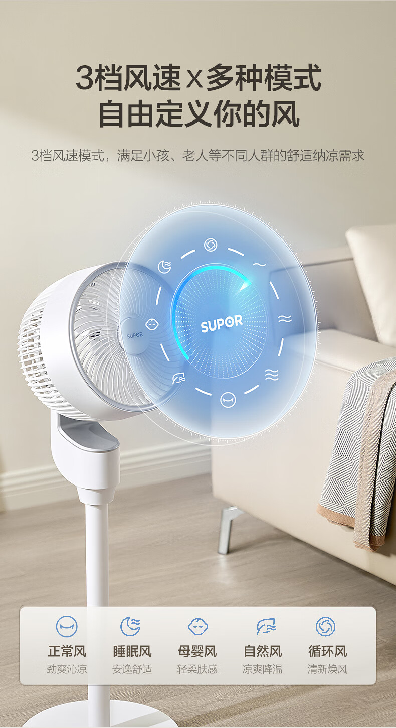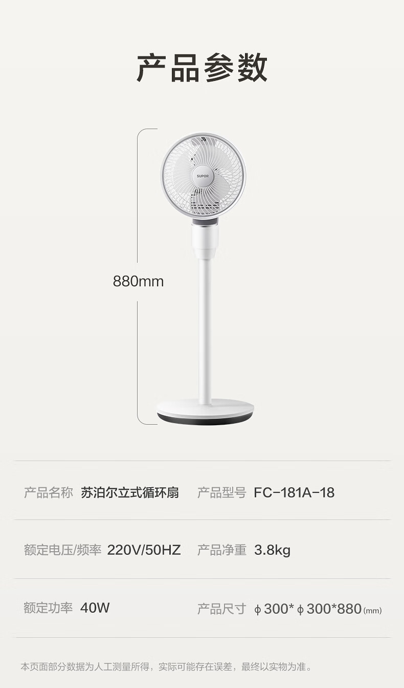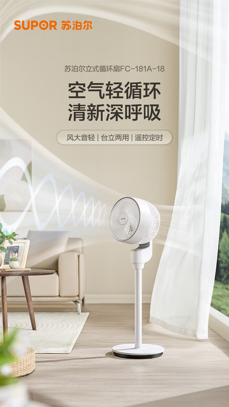 商品名称:苏泊尔(SUPOR)FC- 181A-18电风扇家用 落地空气循环扇声控遥控/台 白色