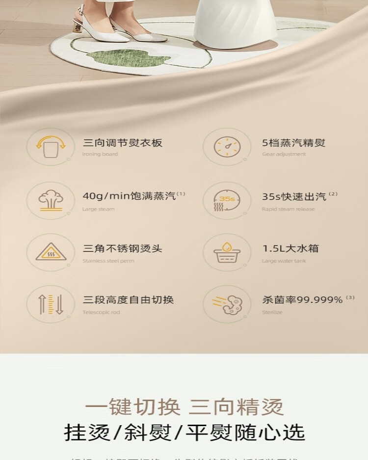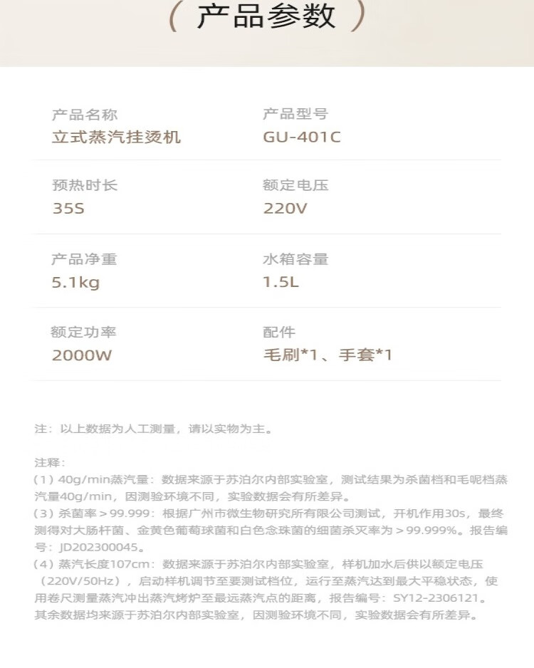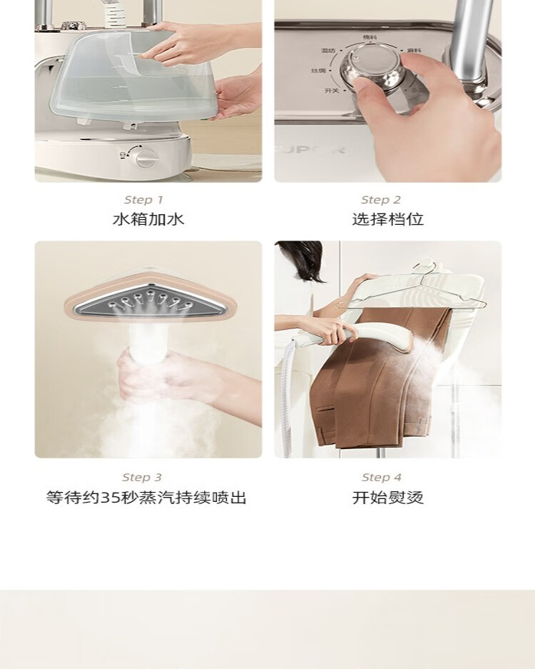 商品名称:苏泊尔(SUPOR)GU-401C挂烫机家用挂式熨烫机2000W双杆熨烫/台 白色