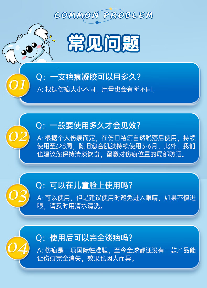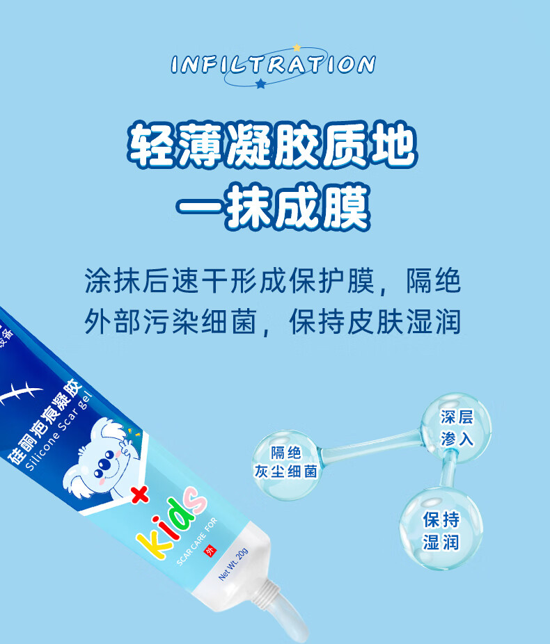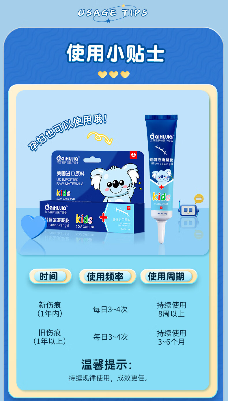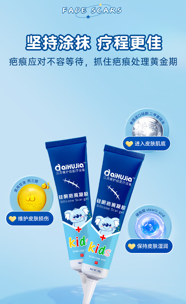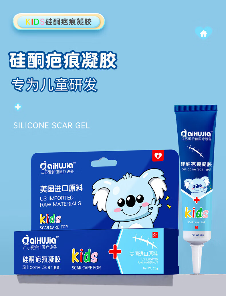 商品名称:爱护佳(aiHuJia)考拉款祛疤膏 硅酮凝胶祛疤膏儿童款医用透明质凝胶 20g/盒