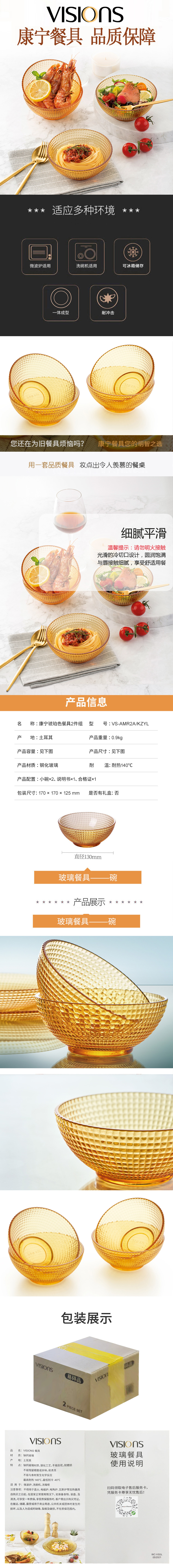 商品名称:康宁VISIONS 琥珀色餐具晶莹系列2件组(2个小碗)(套) 琥珀色 2