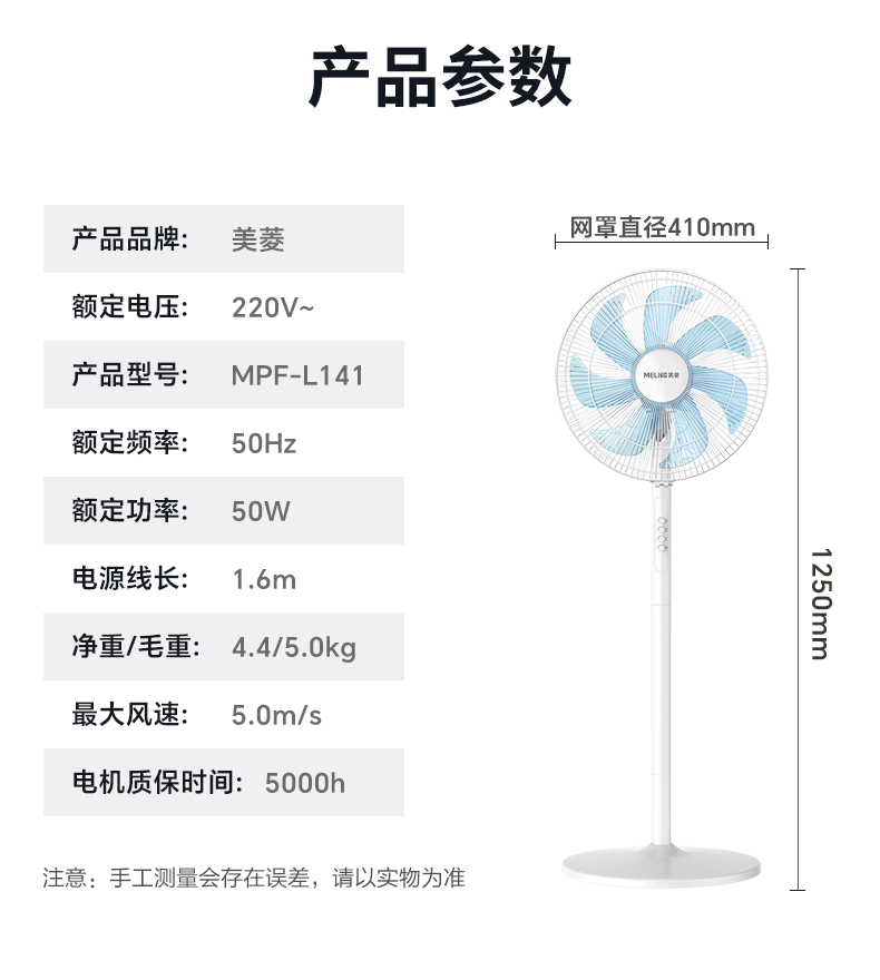 商品名称:美菱(MELING) 电风扇七叶扇静音节能 直径420mm MPF-L141(单位:台) 白色