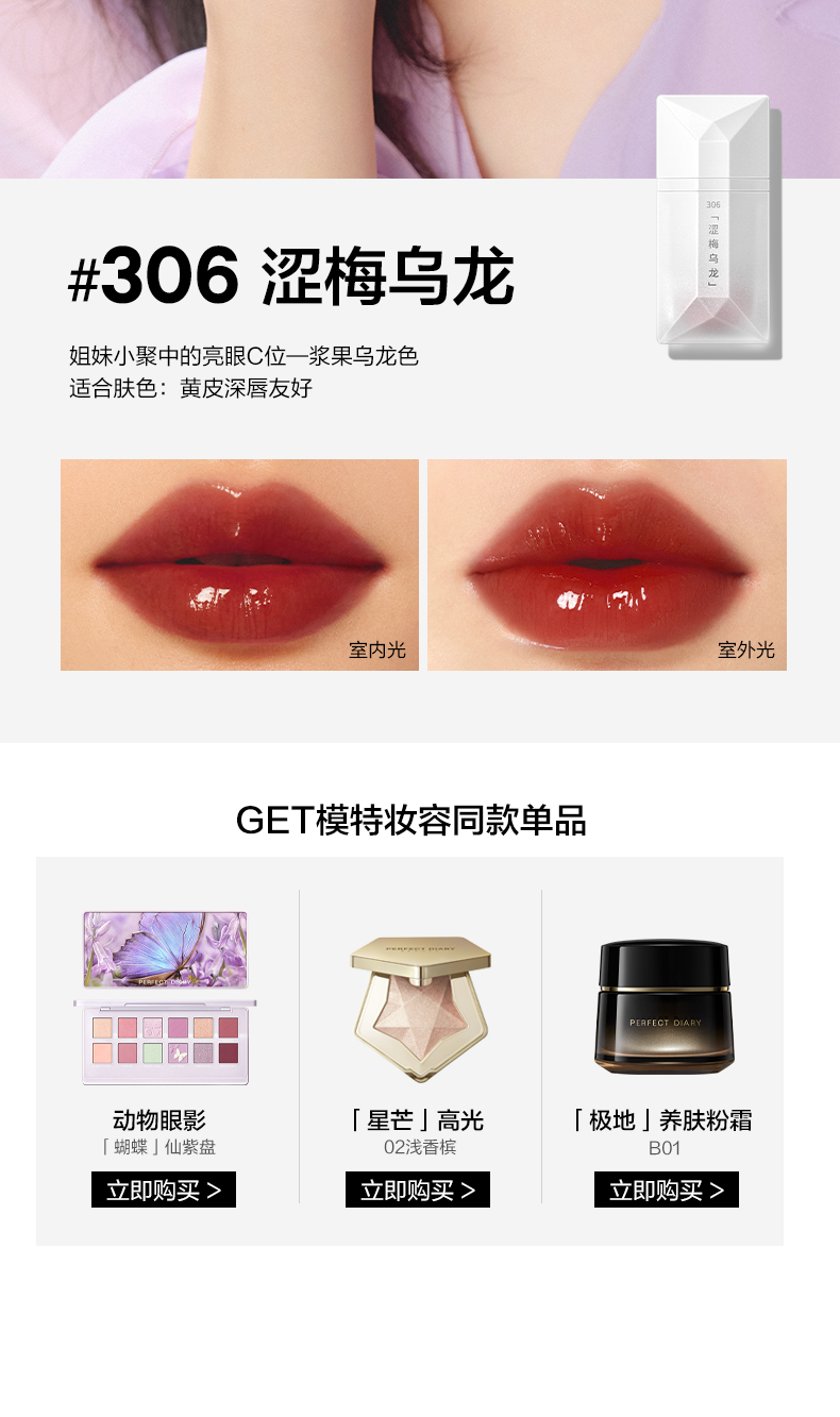 商品名称:完美日记(PERFECT DIARY)茶萃波光名片唇釉(单位:支) 302蜜桃初露