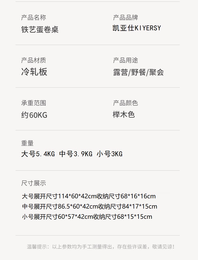 商品名称:凯亚仕文森折叠蛋卷桌(中号)KYS-812(单位:张) 混色
