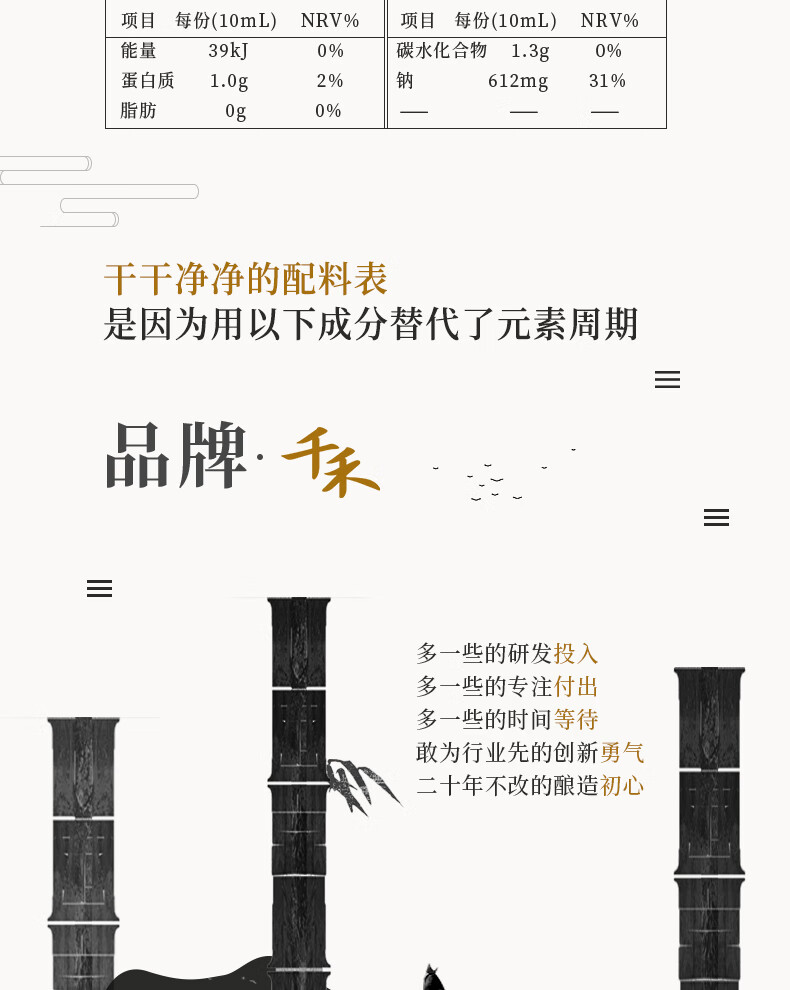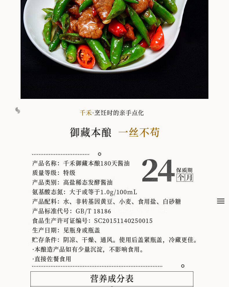 商品名称:千禾零添加酱油180天特级生抽500ml+千禾御藏蚝油510g 12%蚝汁含量调味组合装 500ml+510g