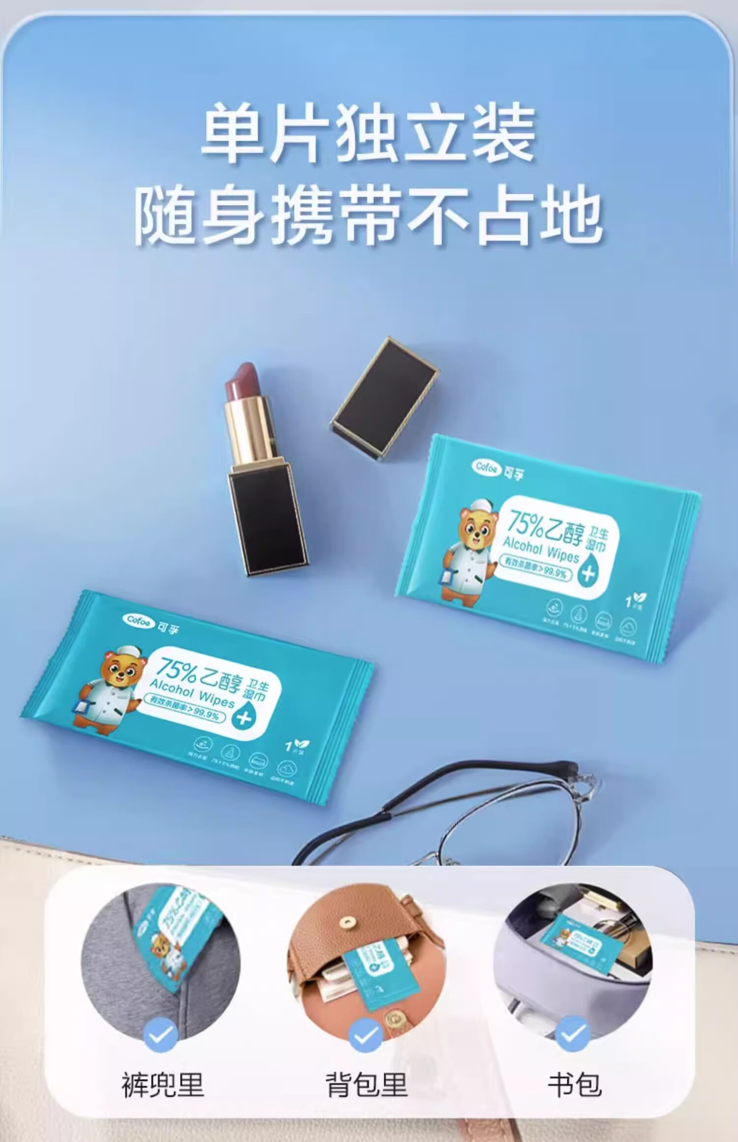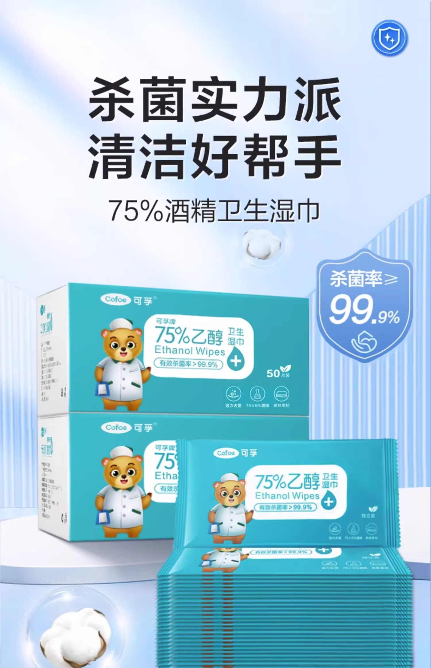 商品名称:可孚 酒精消毒独立包装 200mm*150mm*50片/盒 酒精消毒卫生湿巾 蓝色(单位:盒)
