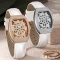商品名称:马克华菲女士镂空机械风手表FW-3560(单位:块) 银壳银面白皮带