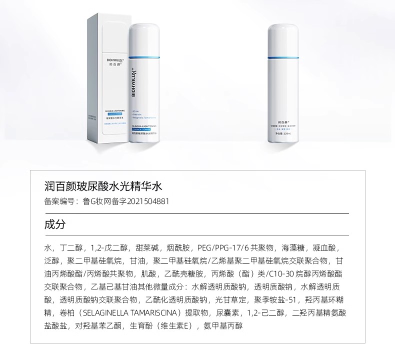 商品名称:润百颜玻尿酸水光保湿精华水120ml(单位:瓶)