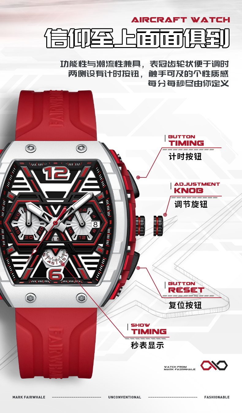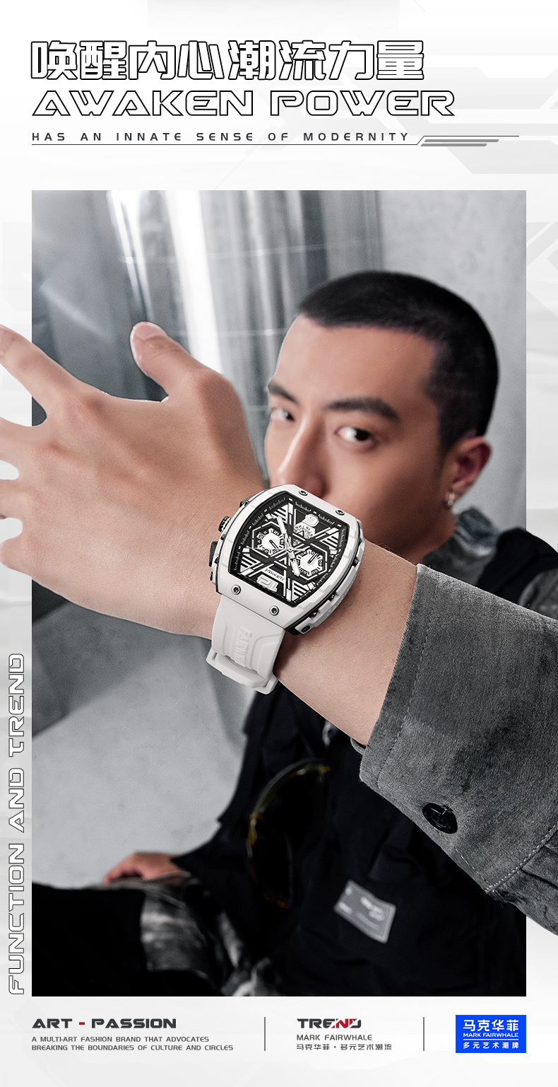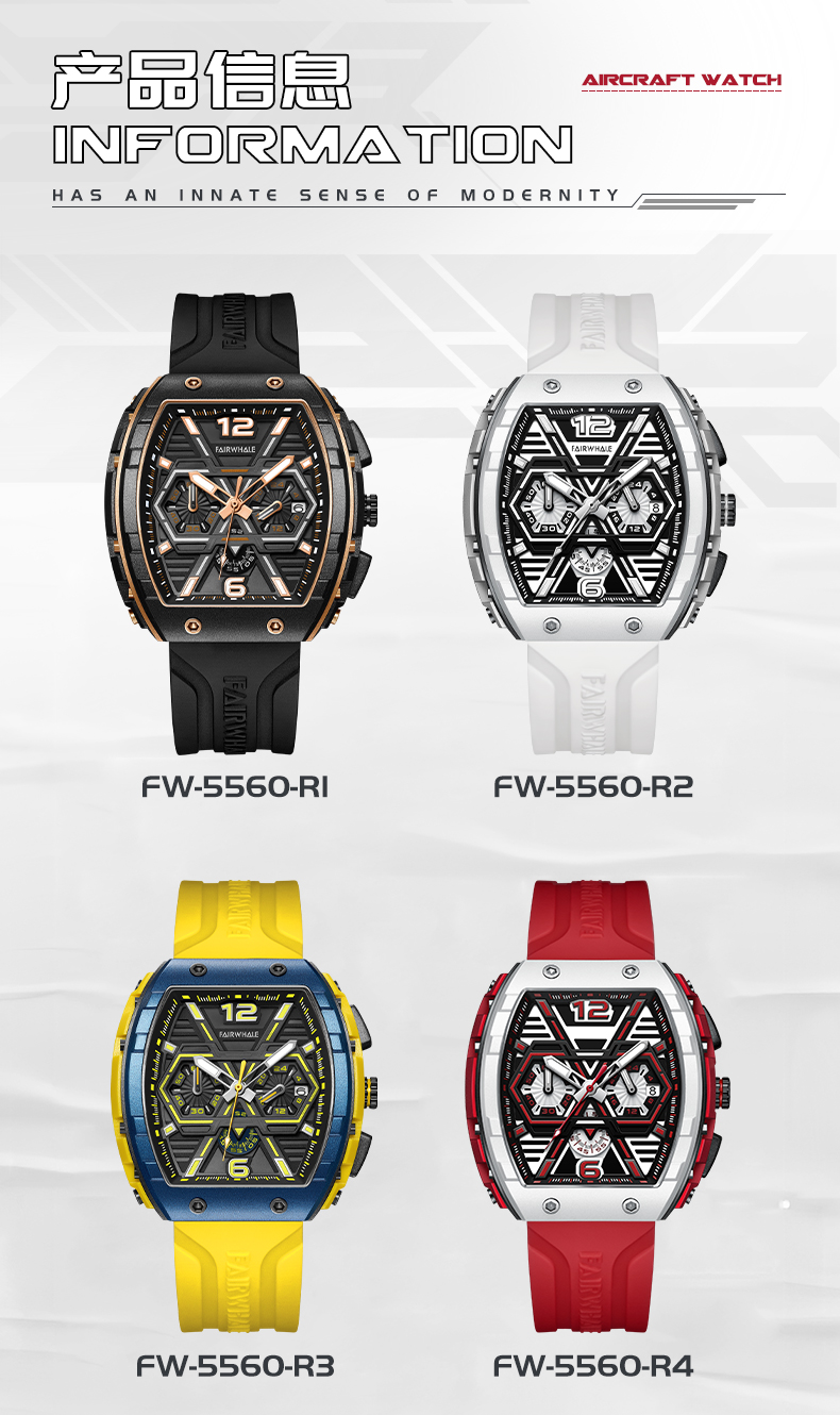 商品名称:马克华菲时尚酒桶型男士手表FW-5560(单位:块) 黄壳蓝面黄胶带