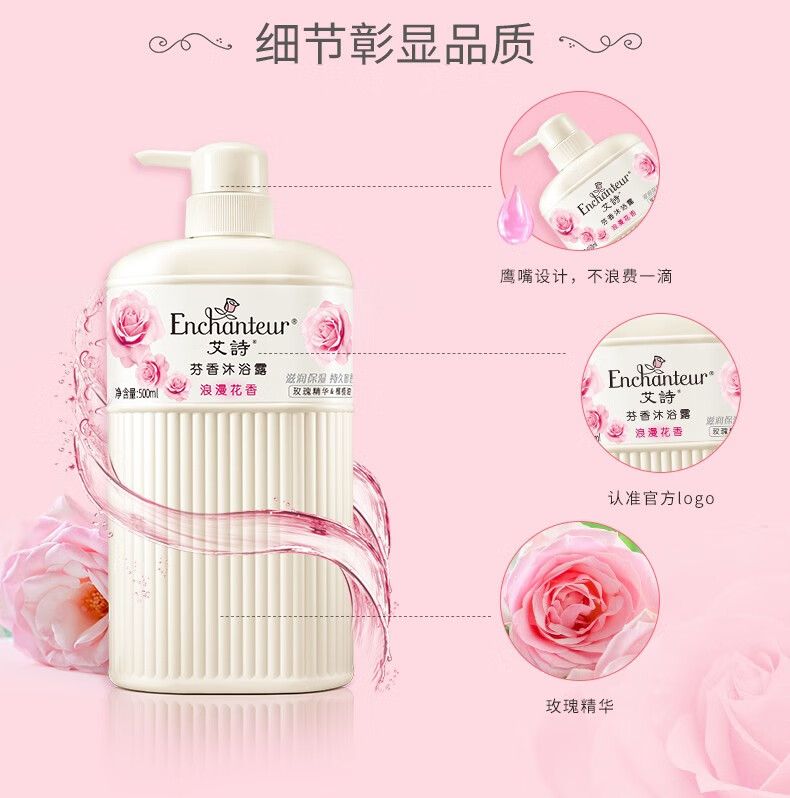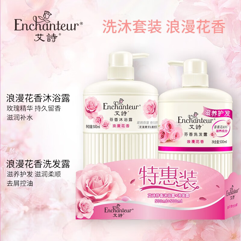 商品名称:艾诗沐浴露+洗发水500ml+500ml 浪漫花香(单位:组) 拿铁色