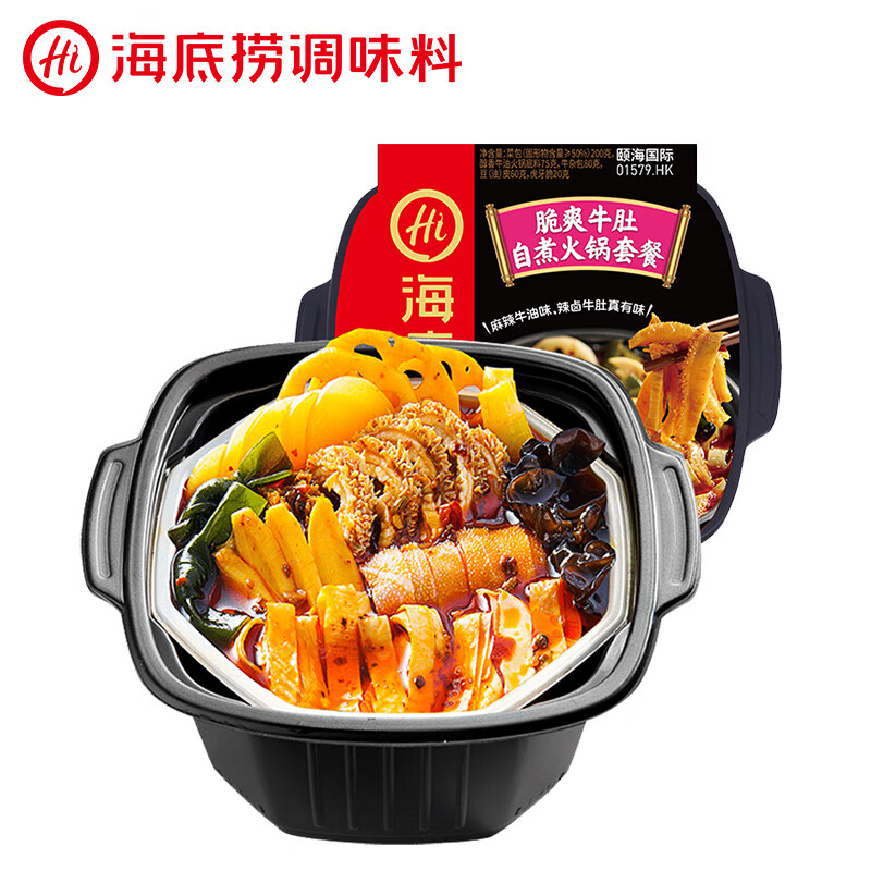 商品名称:海底捞 自热火锅 方便速食 懒人食品零食小火锅 脆爽牛肚自煮火锅套餐435gx2盒 435g*2