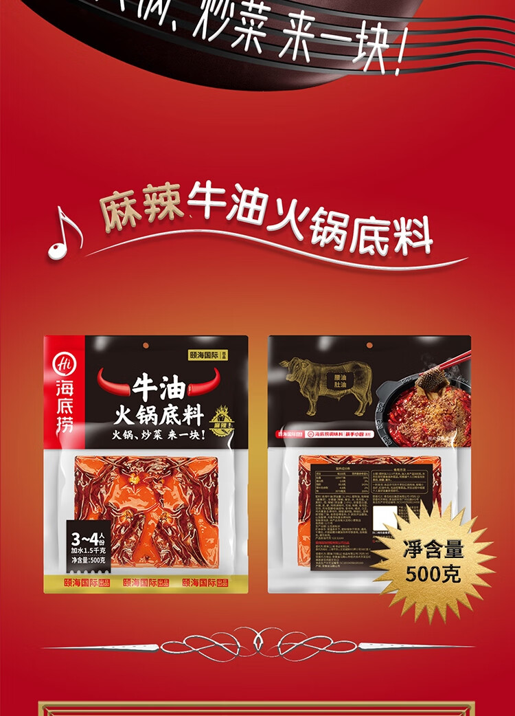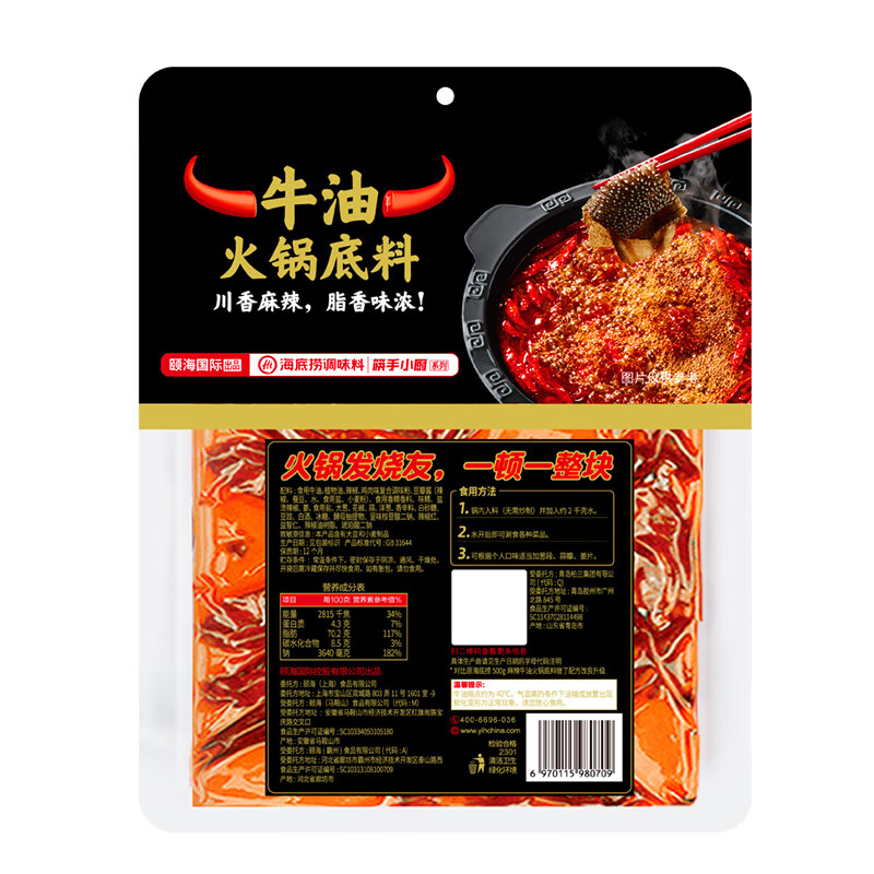 商品名称:海底捞大块浓香牛油火锅底料500g 单位:包 500g