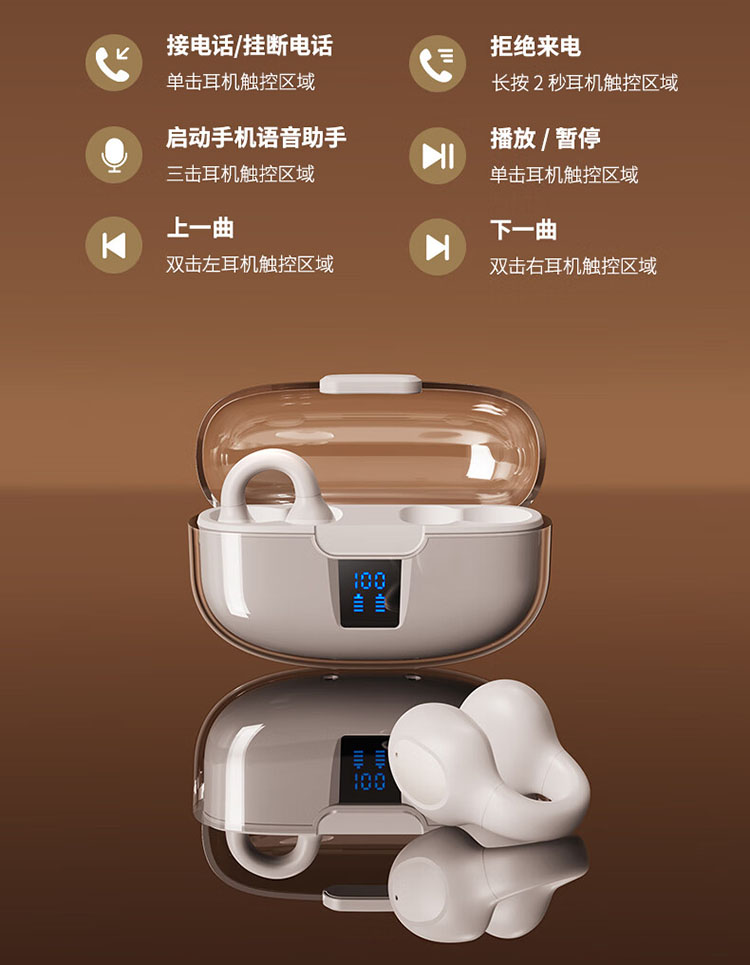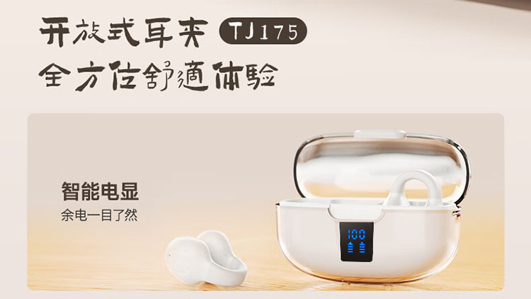 商品名称:爱国者TJ175 蓝牙耳机骨传导概念耳夹开放式不入耳运动跑步骑行健身通话耳机 单位:副 黑色