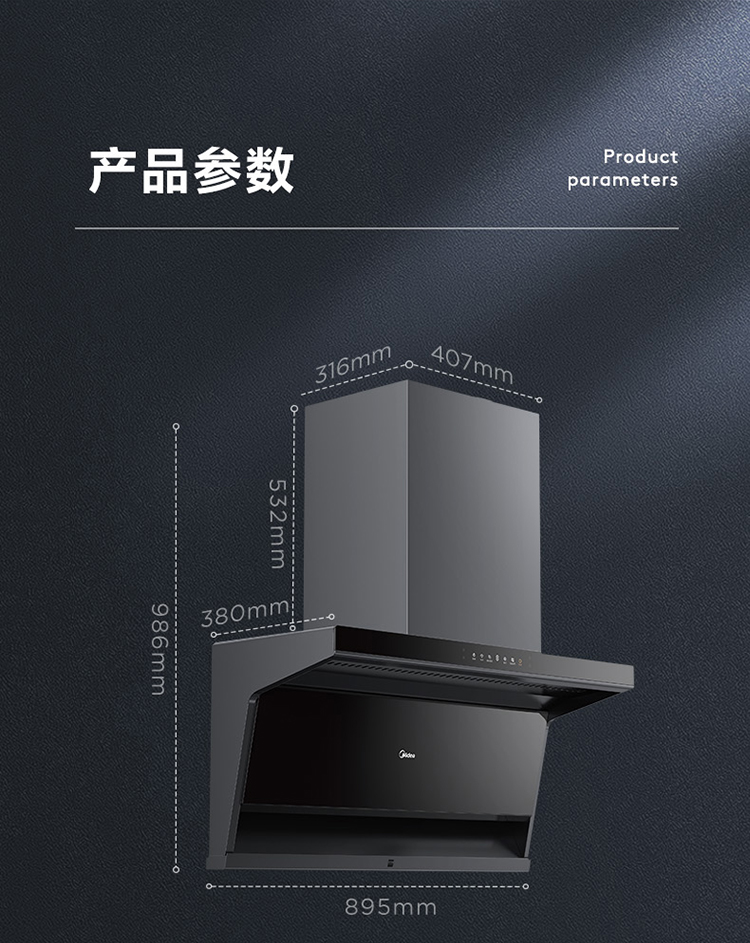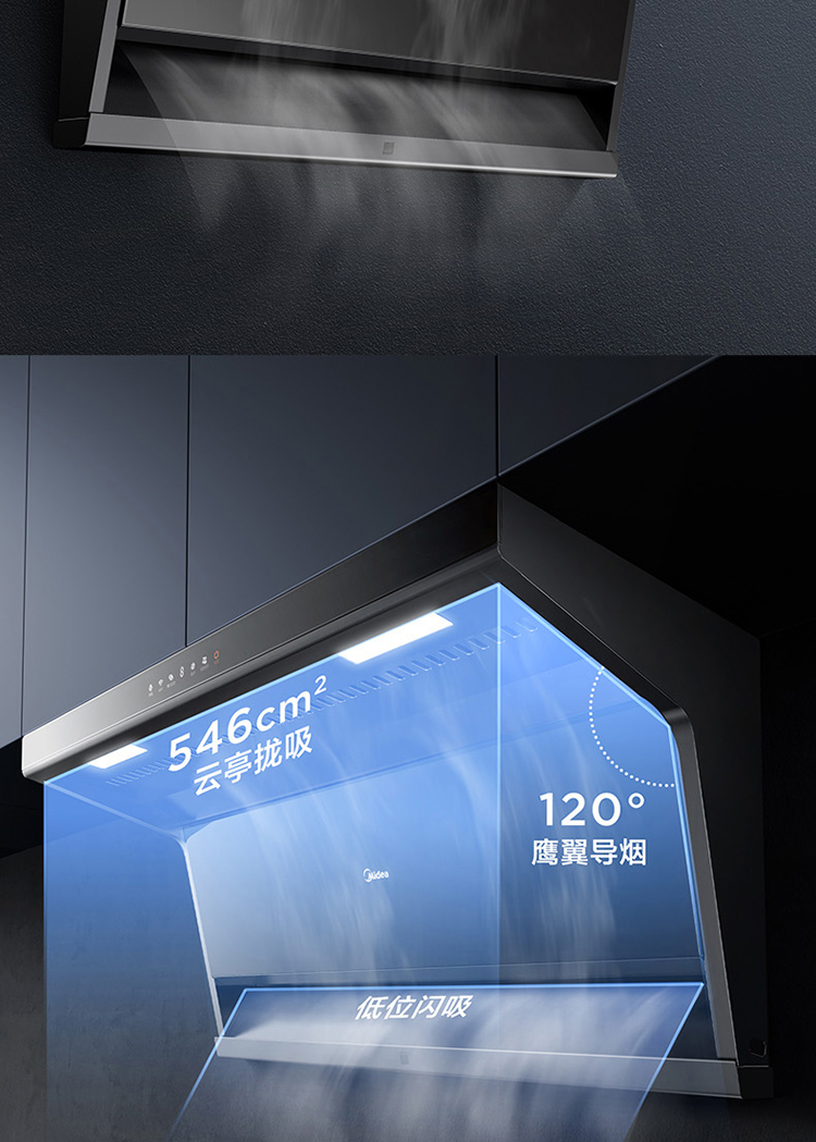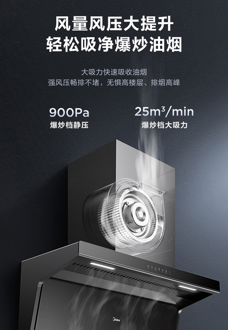 商品名称:美的(Midea)新静吸顶侧双吸油烟机25立方吸力 CXW-140-X2S(单位:台) 黑色