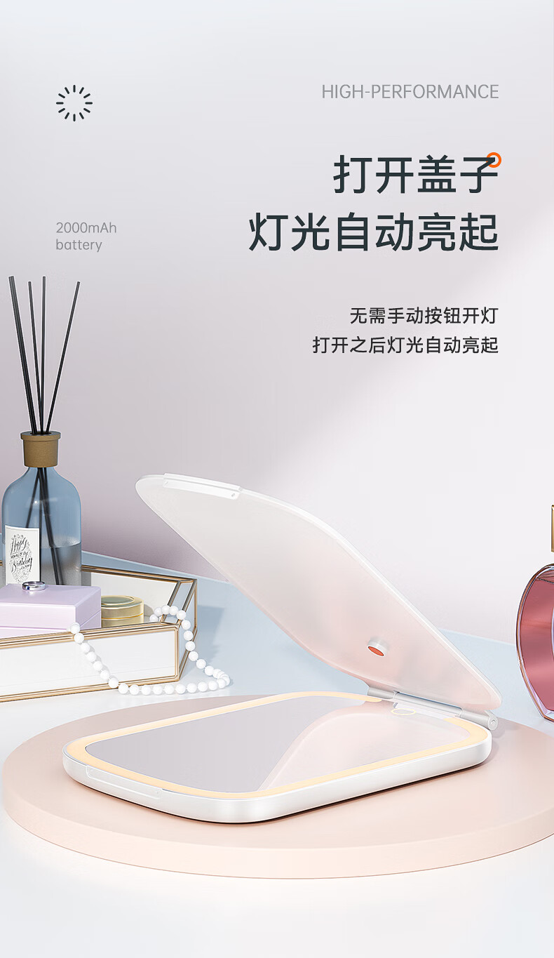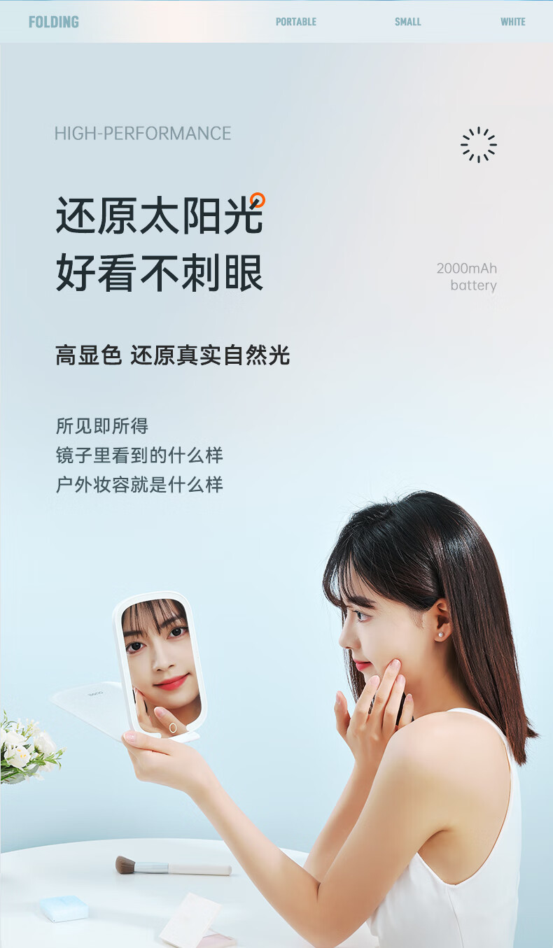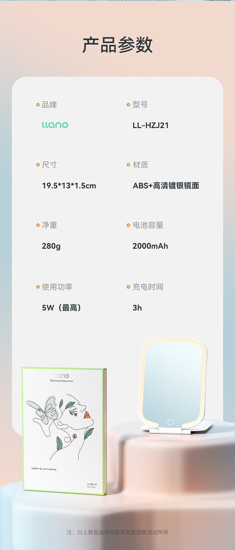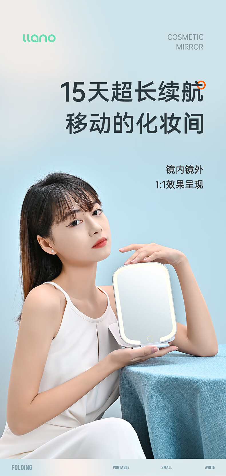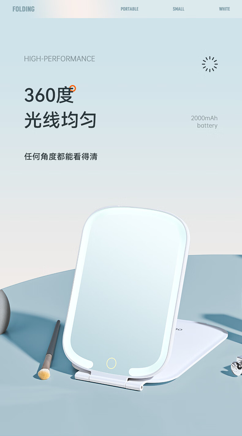 商品名称:绿巨能(llano)化妆镜折叠便携带灯led补光旅游旅行桌面梳妆镜子 LL-HZJ21 单位:个 白色