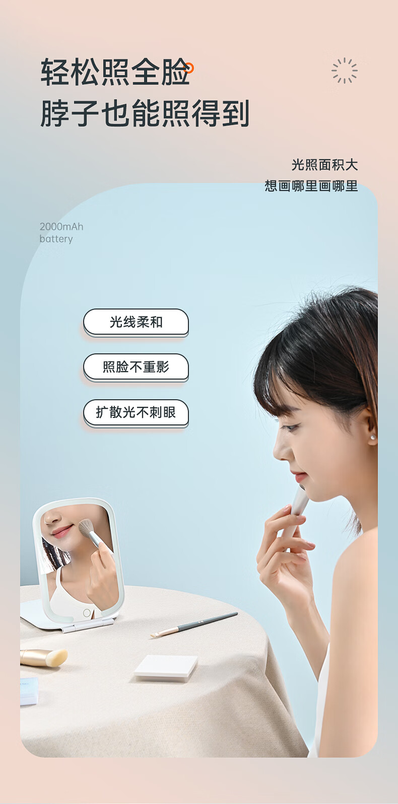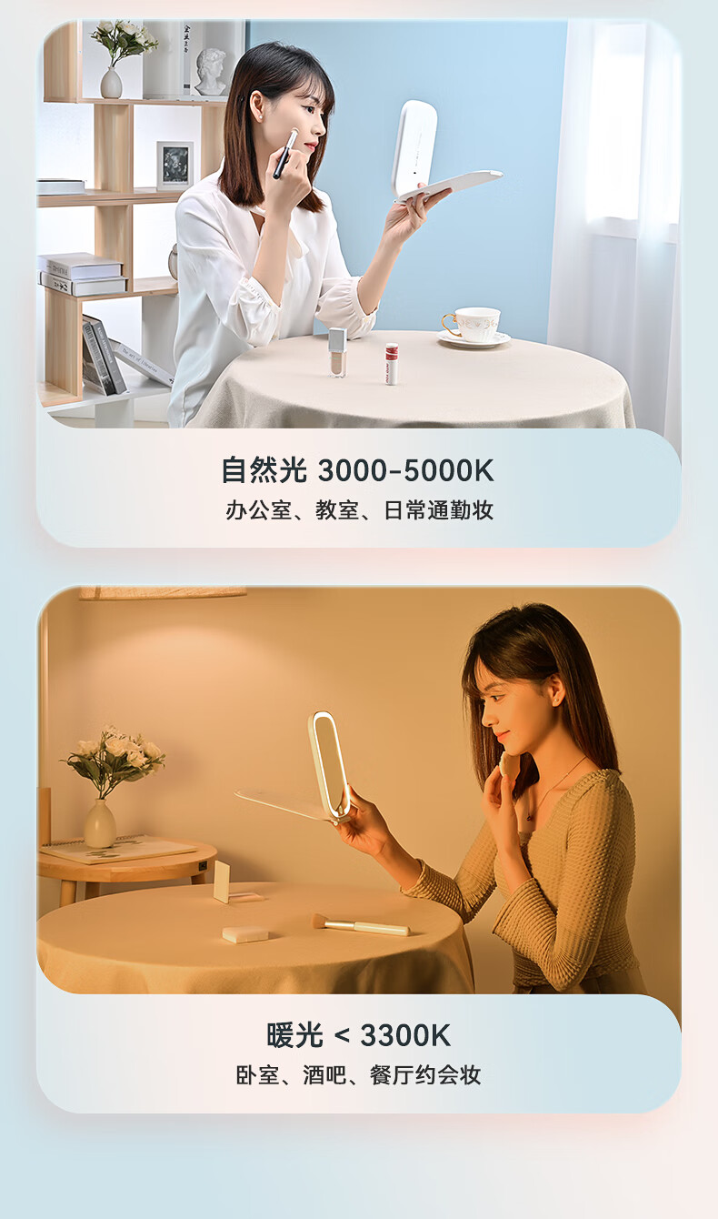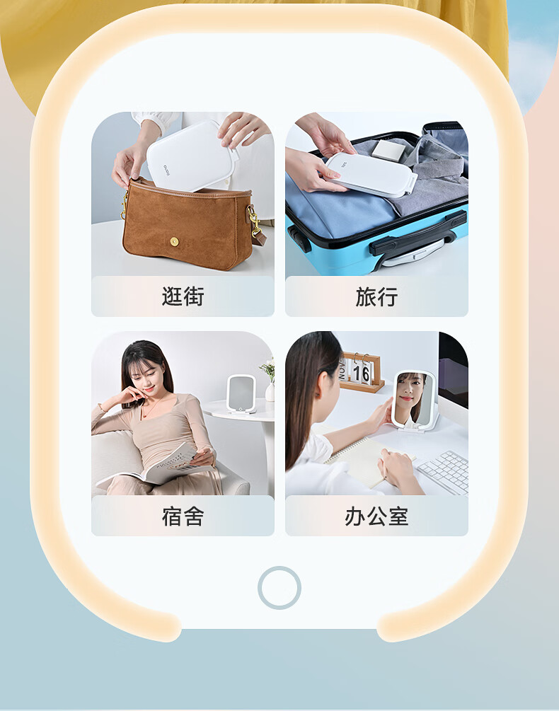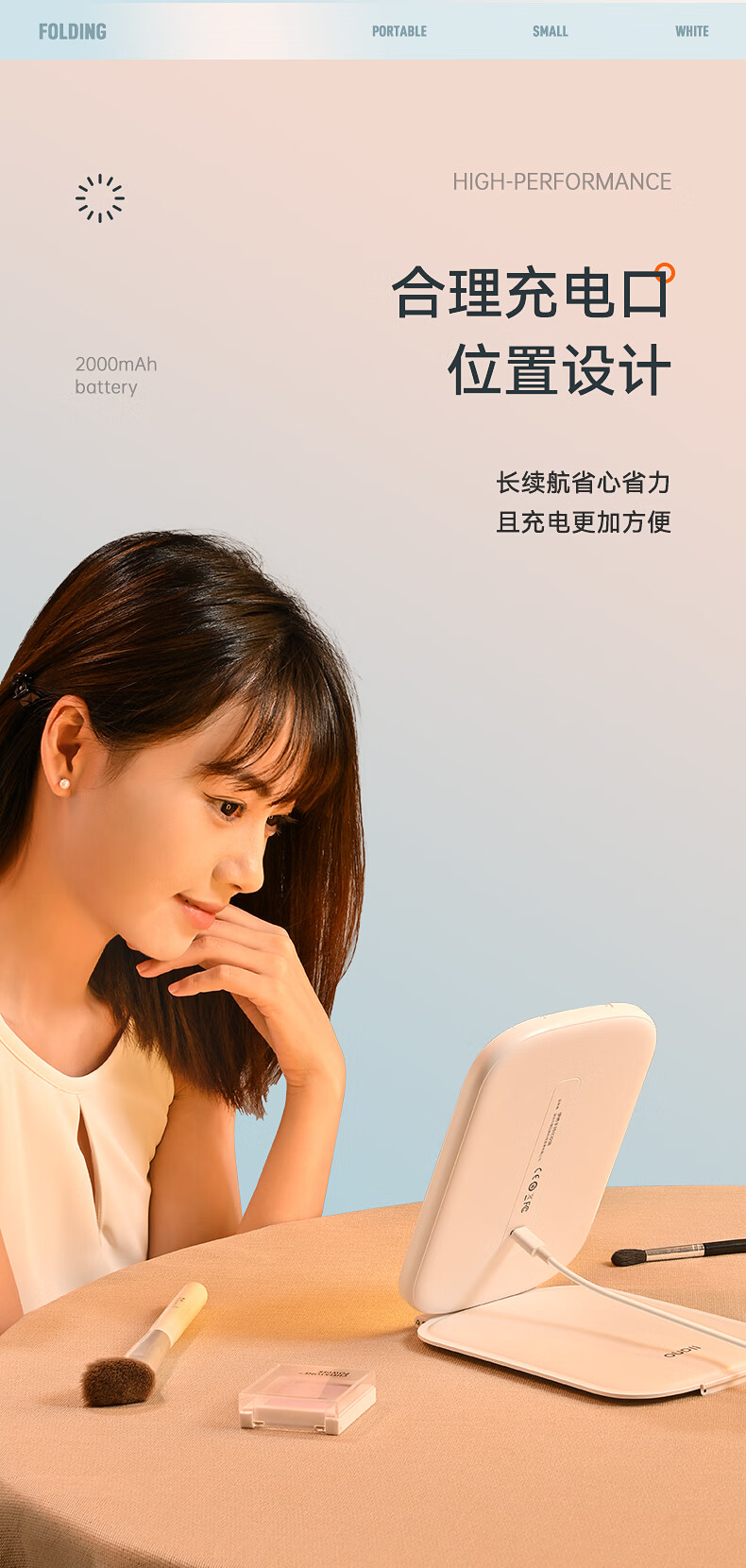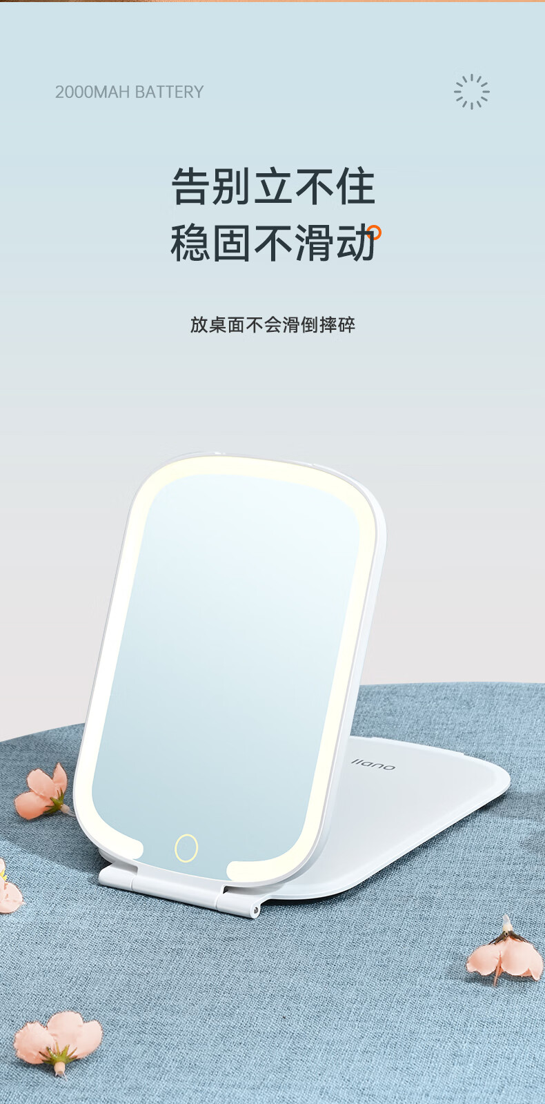 商品名称:绿巨能(llano)化妆镜折叠便携带灯led补光旅游旅行桌面梳妆镜子 LL-HZJ21 单位:个 白色