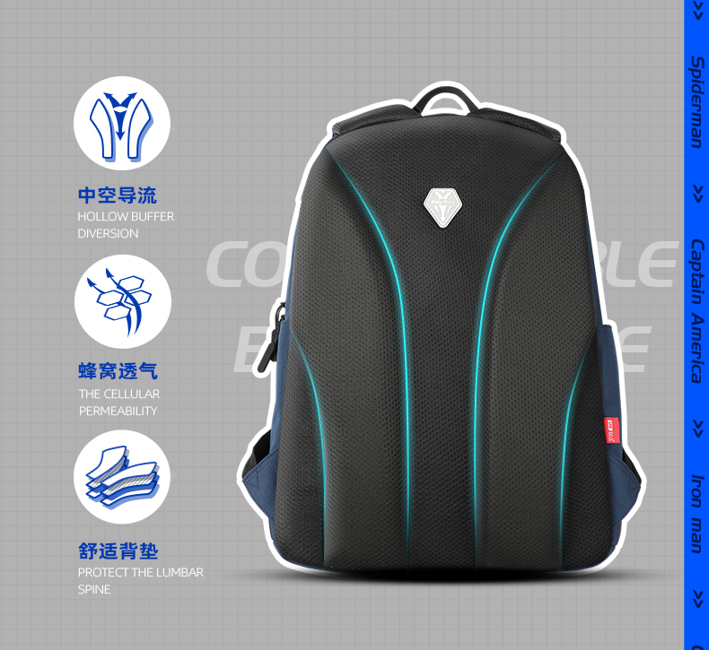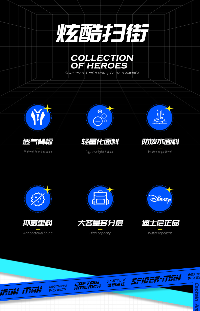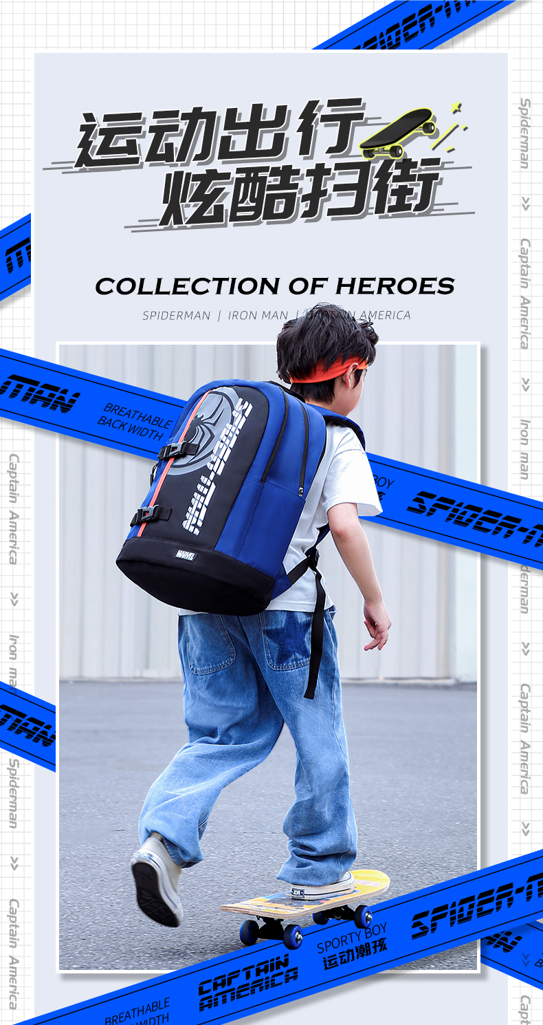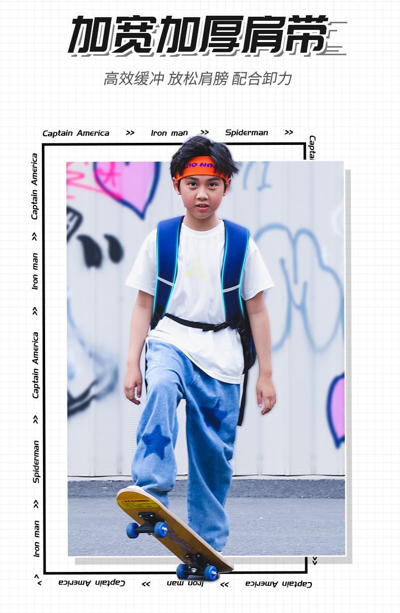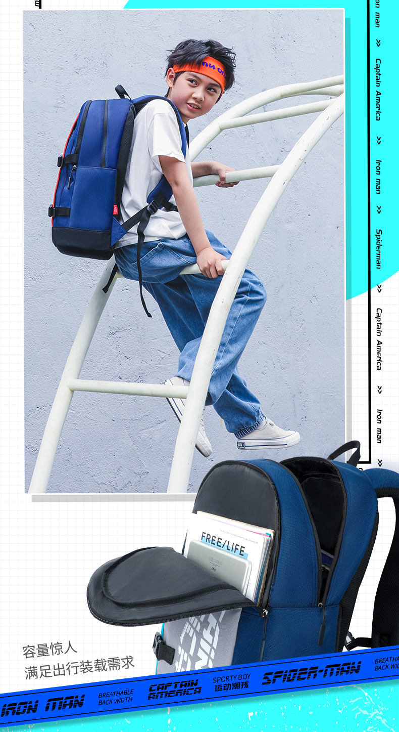商品名称:迪士尼(Disney)小学生书包3-6年级双肩背包护脊减负透气儿童书包BA7104A1美队(单位:个 蓝色