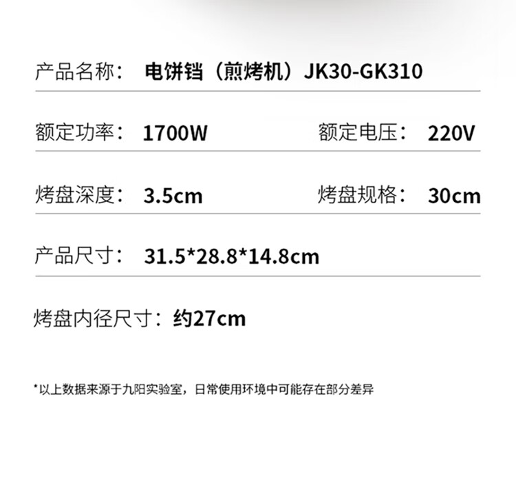 商品名称:九阳(Joyoung)电饼铛多功能家用大烤盘JK30-GK310 单位:台 香槟金