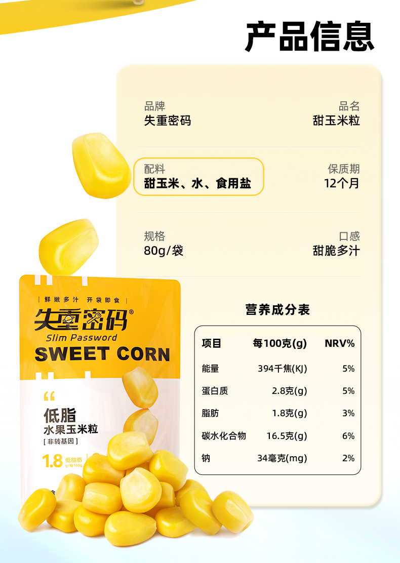 商品名称:失重密码充氮水果玉米粒80g/袋 黄色