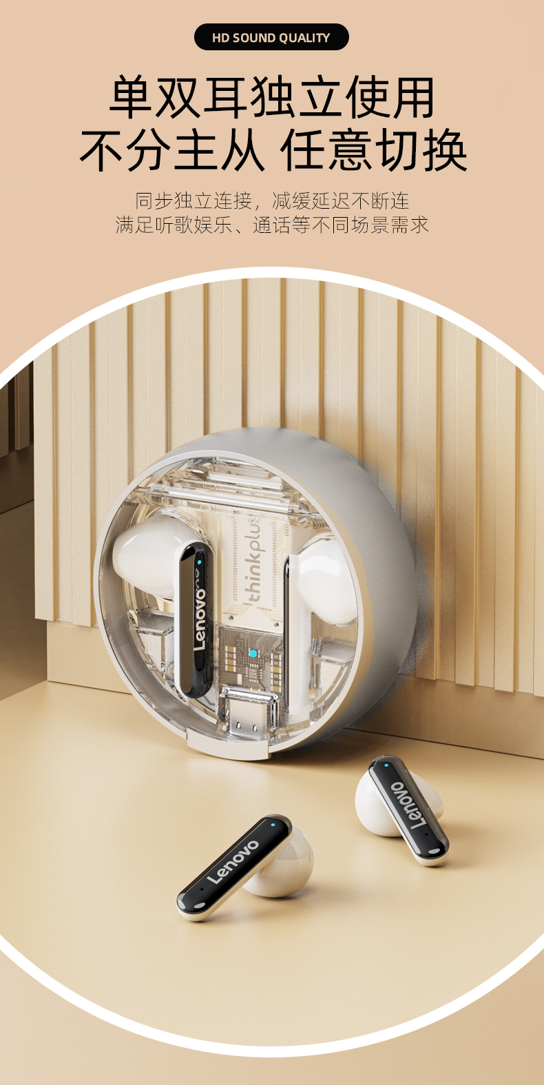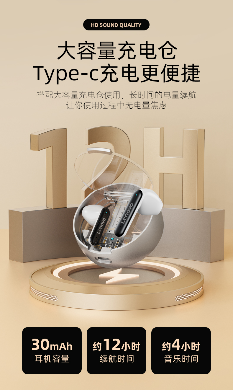 商品名称:联想thinkplus LivePods 真无线蓝牙耳机LP8pro(单位:个) 白色