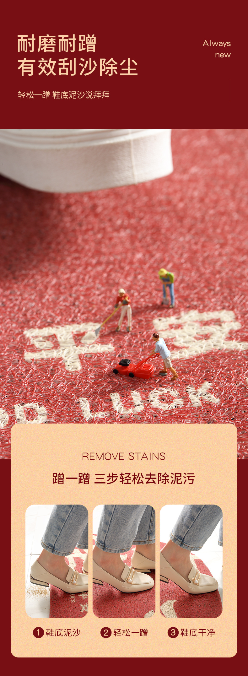 商品名称:大江地垫地毯-丝圈入户垫-挥毫(方)80*120cm(单位:张) 红色 红色