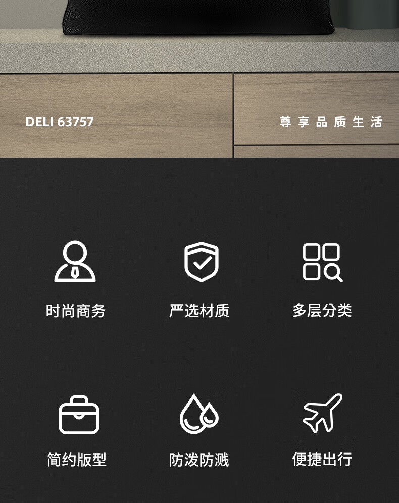 商品名称:得力(deli)男女便携商务手提袋文件包 /电脑资料事务包 文件保护 63757 单位:个 黑色