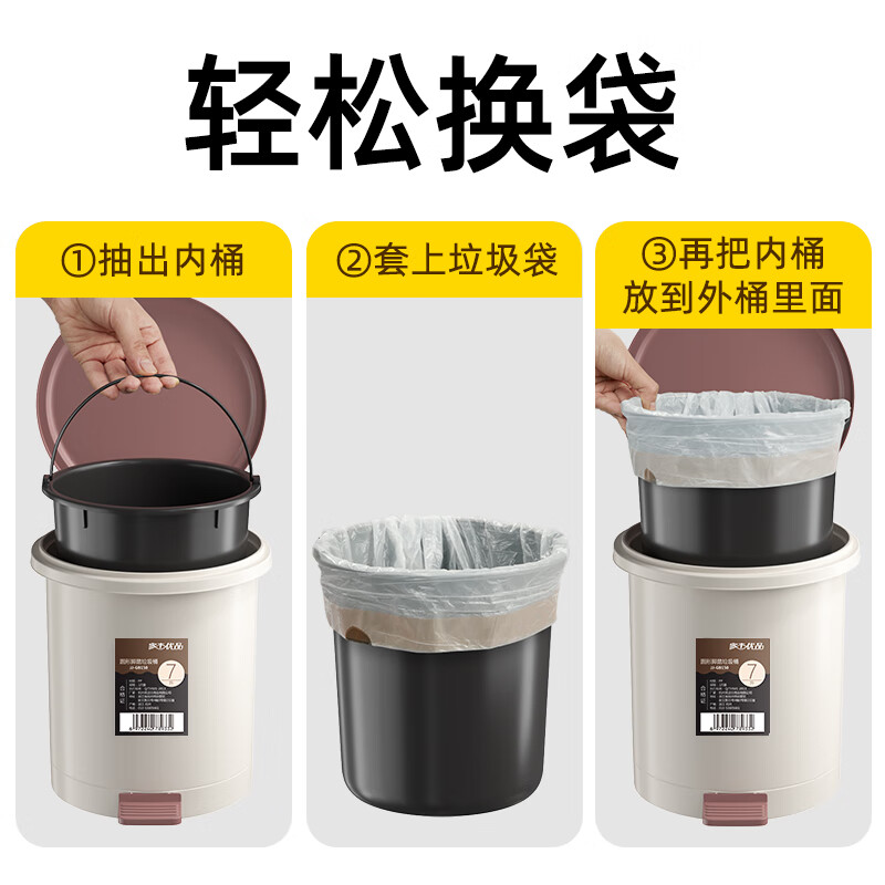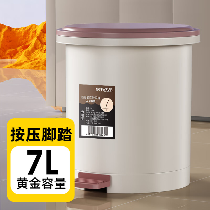 商品名称:家杰优品脚踏垃圾桶双桶设计脚踩开盖大号7L厨房垃圾桶带盖家用卫生间(单位:个) 咖色
