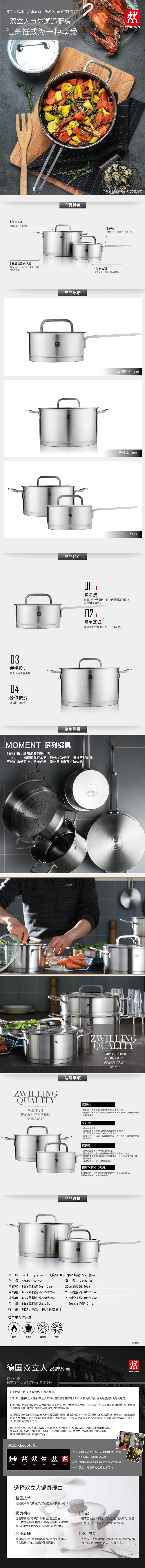 商品名称:双立人Zwilling Moment浅烧锅 20cm+单柄炖锅16cm 套装ZW-C128 单位:套 银色