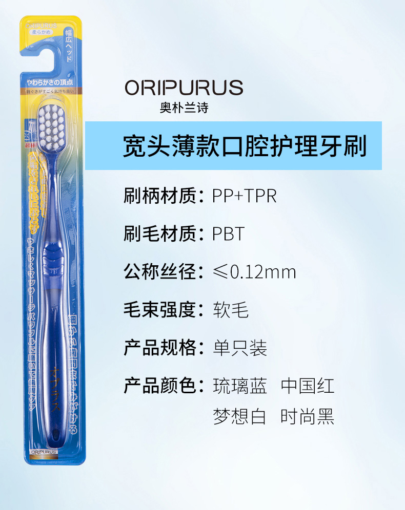 商品名称:ORIPURUS 奥朴兰诗宽头薄款口腔护理牙刷 软毛款 1支装(单位:支) 5份装
