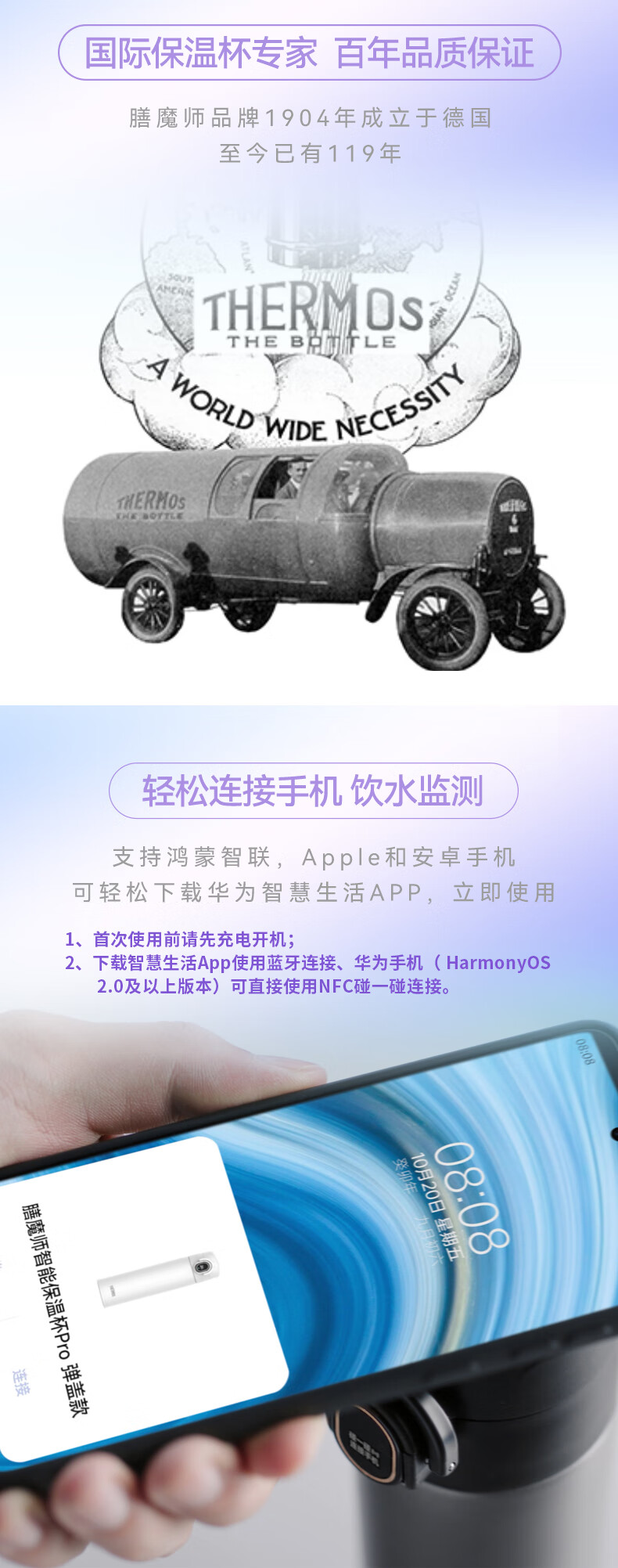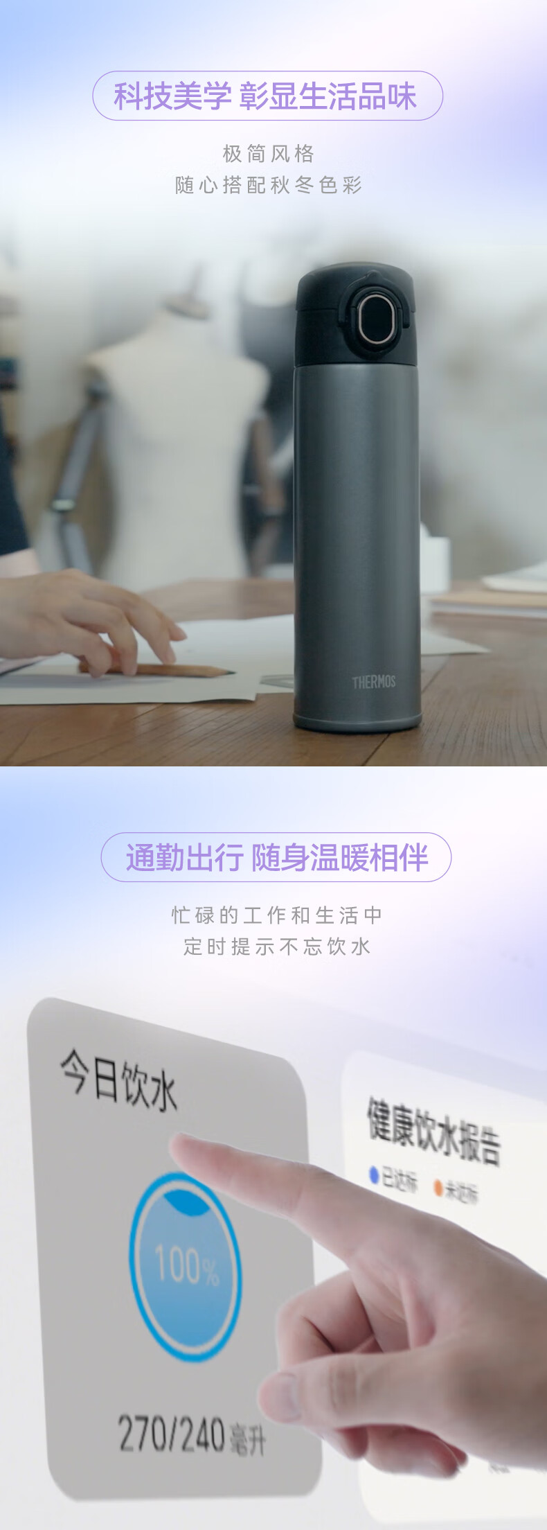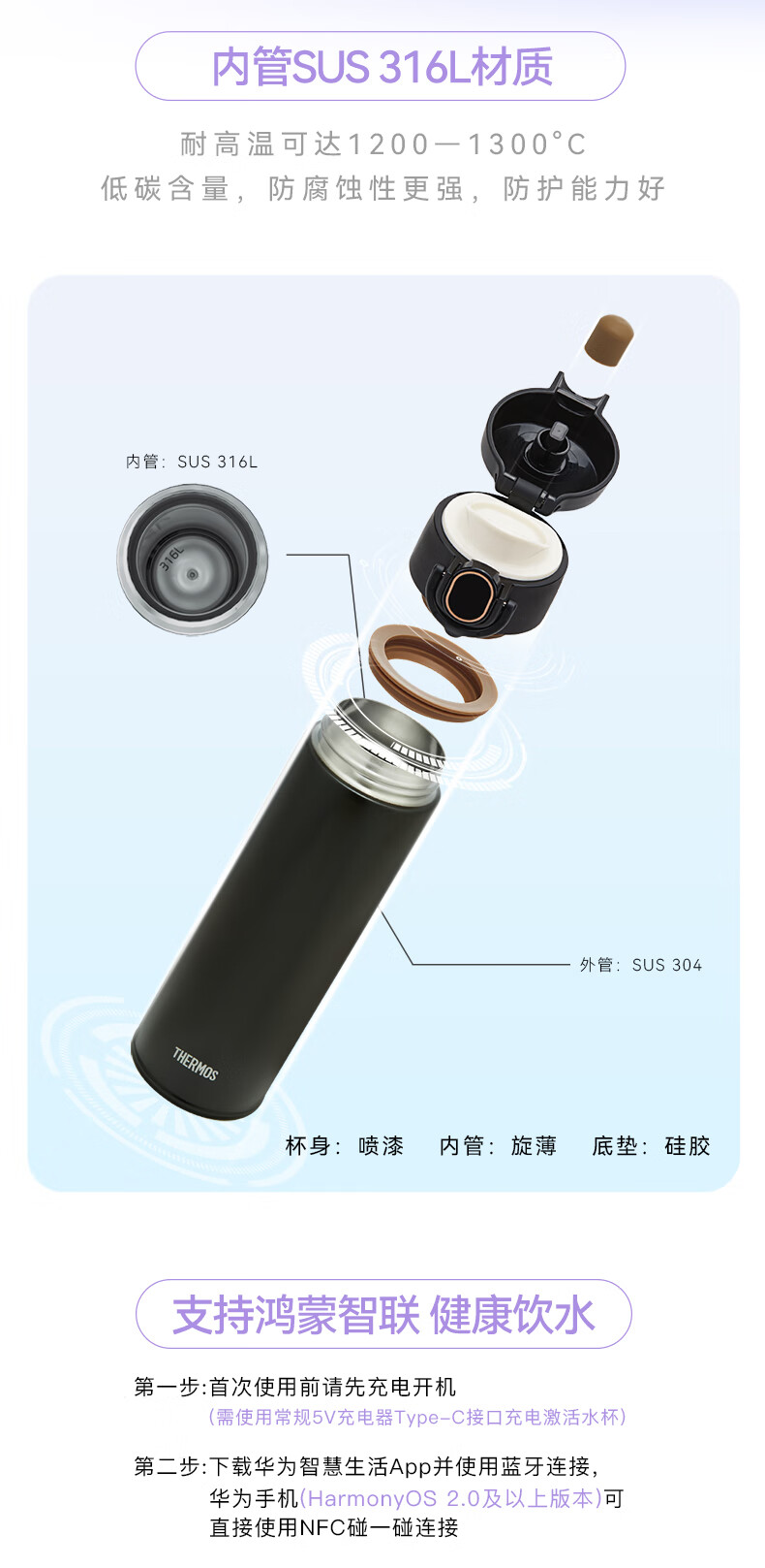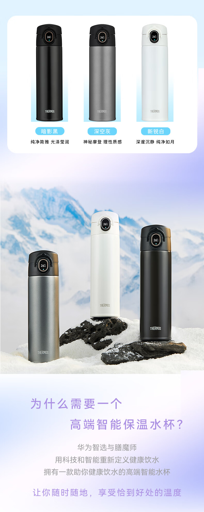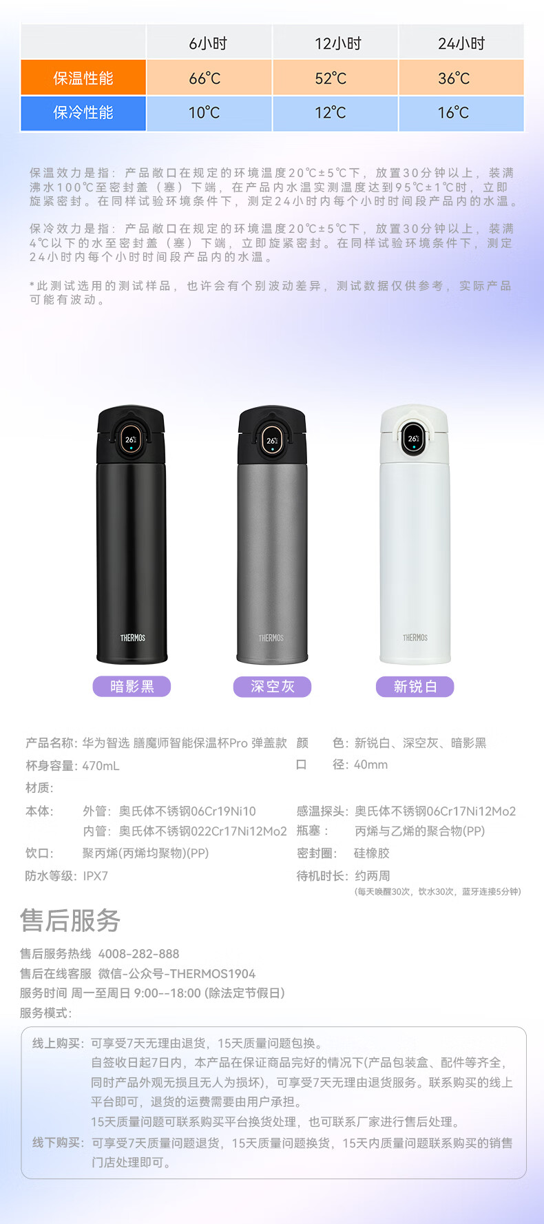 商品名称:膳魔师 华为智选 智能保温杯Pro弹盖款 TEEA-470S 470ml/单位:个 黑色