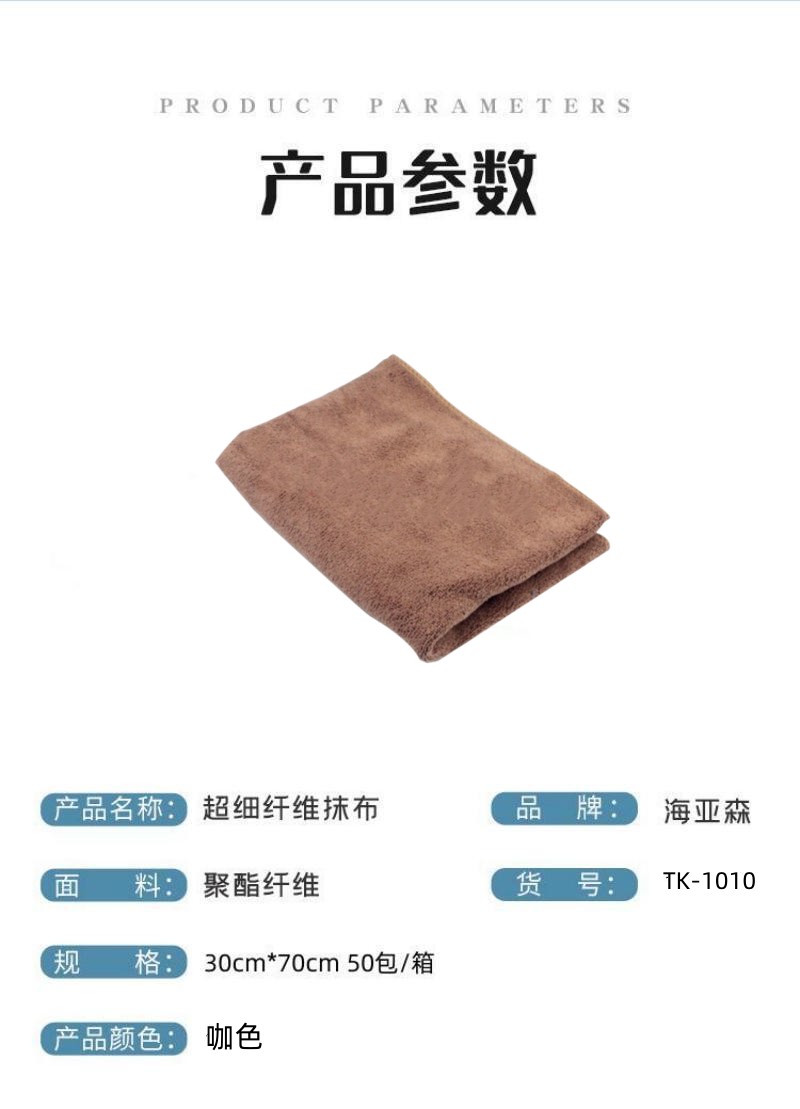 商品名称:海亚森 TK-1010 超细纤维毛巾 30*70cm (咖色) 50包/箱 咖啡色